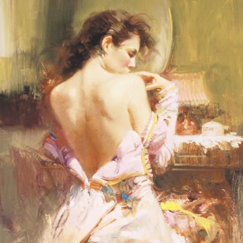 "Ballgown" is a limited edition giclee on canvas by Pino (1931-2010), numbered and hand signed by the artist. Includes Certificate of Authenticity. Measures approx. 8" x 10" (image).