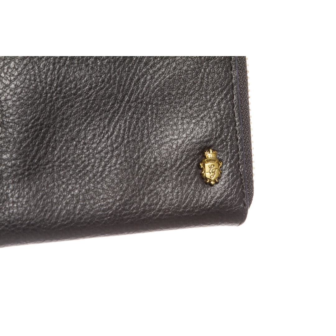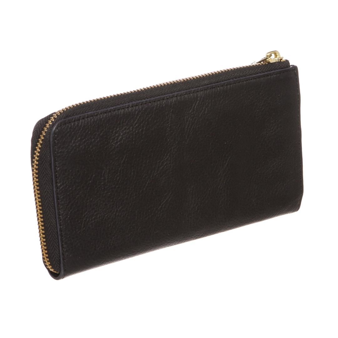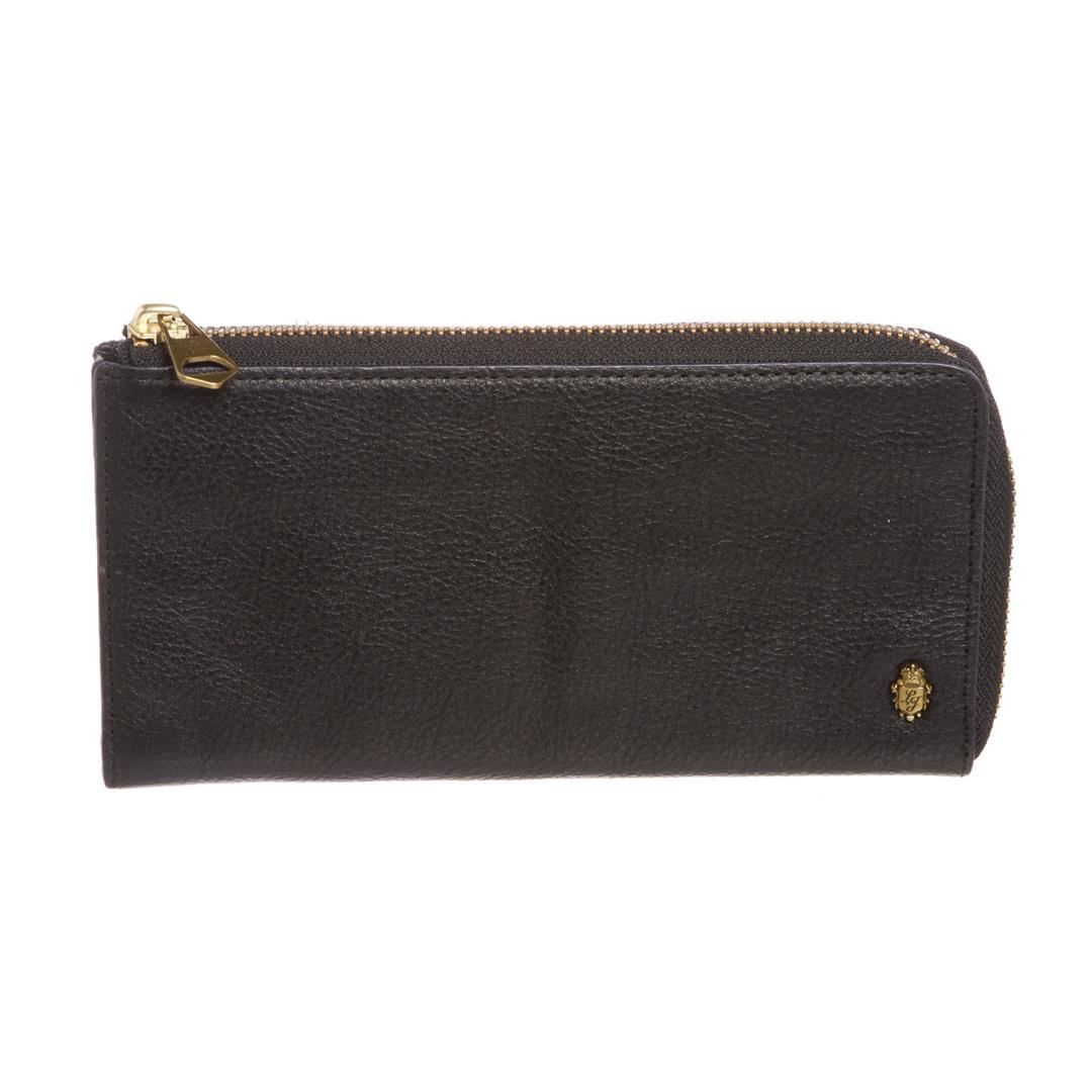 Black Ballistic Spirit leather zip wallet with gold-tone hardware, twelve credit card pockets, two card pockets on center slip pocket. Overall zipper closure. Dimensions = 8"x.75"x4.25"/20.32cmx1.90cmx10.79cm. Item is pre-owned.