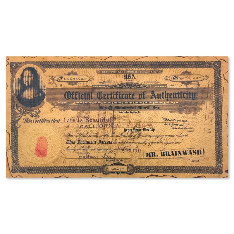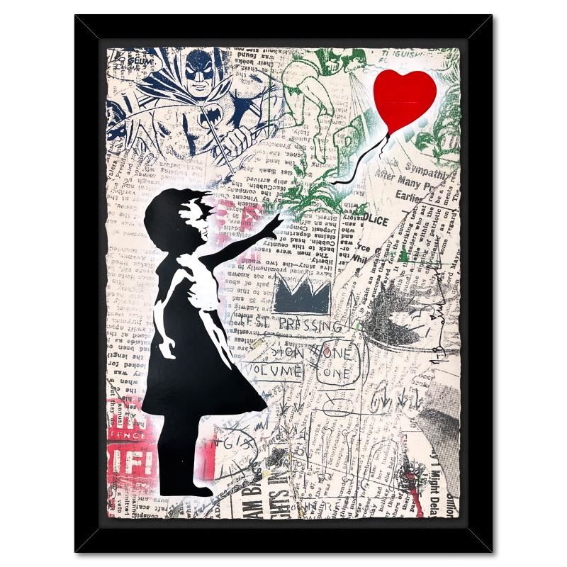 "Balloon Girl" is a unique (UNIQ) mixed media on deckle edge paper by Mr. Brainwash, hand signed and bearing the thumbprint of the artist inverso. This piece comes custom framed. Includes Certificate of Authenticity. Measures approx. 34" x 26" (frame), 30" x 22" (image).