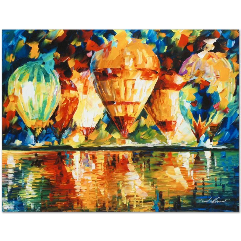Leonid Afremov's masterful use of color and texture make his paintings unique collectibles that are sure to brighten any wall. "Balloon Show" is a limited edition giclee on stretched canvas, numbered in verso and bear Afremov's authorized signature. This piece comes gallery wrapped and ready to hang. Includes Certificate of Authenticity! Measures approx. 24" x 18" (image).