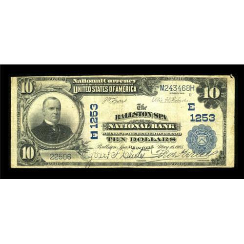 <B>Ballston Spa, NY</B></I> - $10 1902 Plain Back Fr. 624 <B>The Ballston Spa NB</B></I> Ch. # (E)1253<BR> A decent large example from this well collected location. <B>Fine,</B></I> with clear signatures. <BR><I>From The Thomas A. Bergin Collection</B></I><BR><BR><b>Shipping:</b> Coins & Currency (<a target="_blank" href="http://www.heritageauctions.com/common/shipping.php">view shipping information</a>)