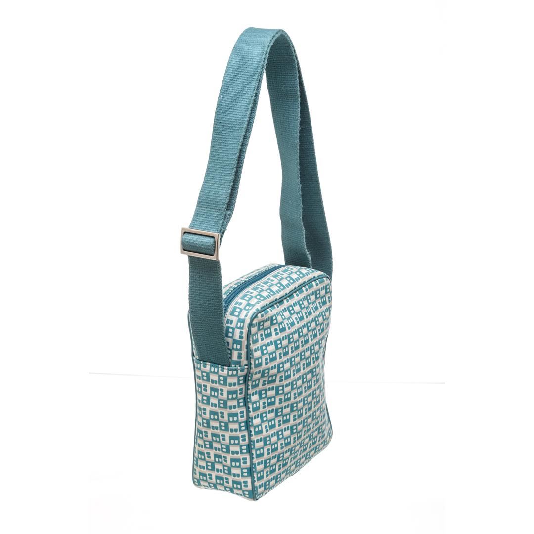 Crafted out of blue and white monogram canvas, blue leather trim, and zip top closure. Inner black canvas lining and one side zip pocket.