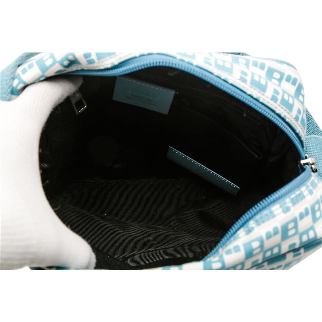 Crafted out of blue and white monogram canvas, blue leather trim, and zip top closure. Inner black canvas lining and one side zip pocket.