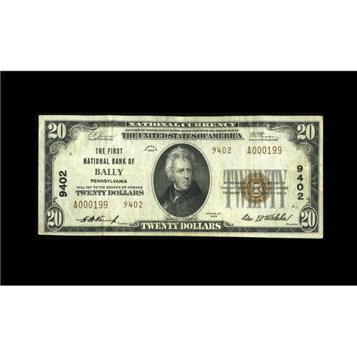 Bally, PA - $20 1929 Ty. 2 The First NB Ch. # 9402