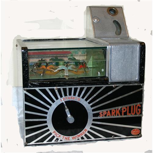 Bally Spark Plug Horse Race Nickel Slot Machine.  Random payout from 1 to 20 nickels.  Eight possible winners.  Original condition.  11" x 14" x 16" T.  Circa 1934.