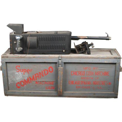 Bally "Super Commando" Coin-op Machine Gun Holds 800 Pellets and was set up in Amusement Parks With the original wood crate to transport Very Heavy & intricate