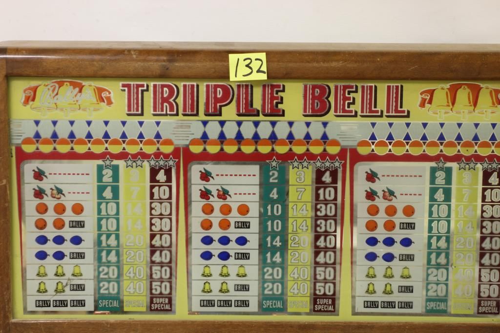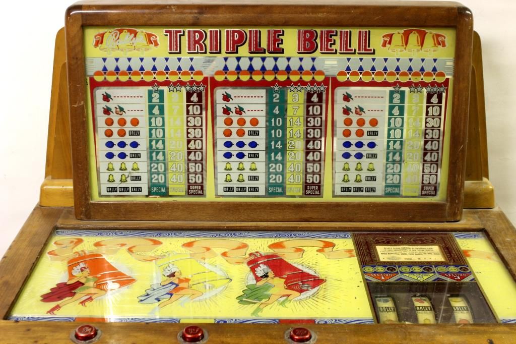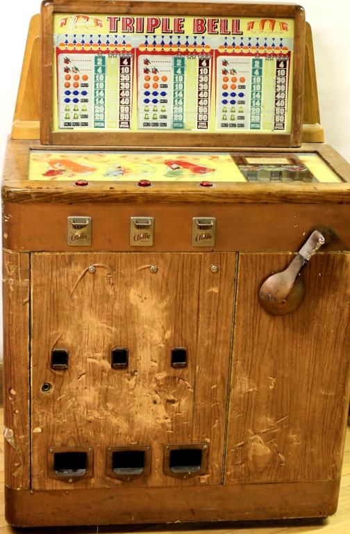 Bally Tripple Bell floor model slot machine, complete and original, non functioning. Has set in storage for 30+ years. Glass in great condition.