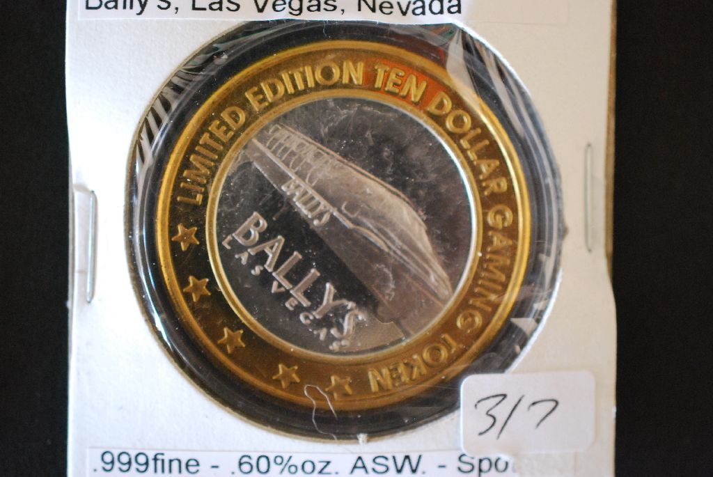 Bally's Las Vegas NV Limited Edition Two-Tone $10 Gaming Token; .999 Fine Silver .60% Oz. ASW; EST. $25-40