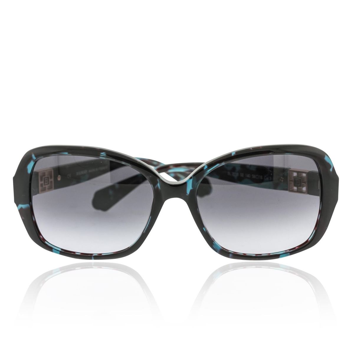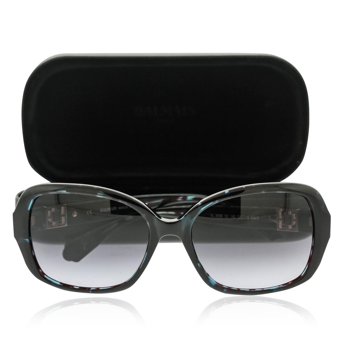 One pair of Balmain blue tortoise sunglasses. Style number BL2038. Includes case, lens cloth, and safety booklet.