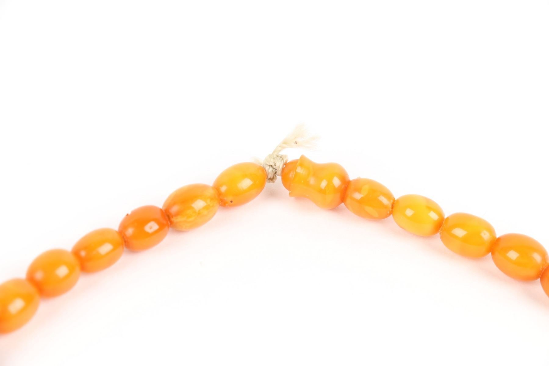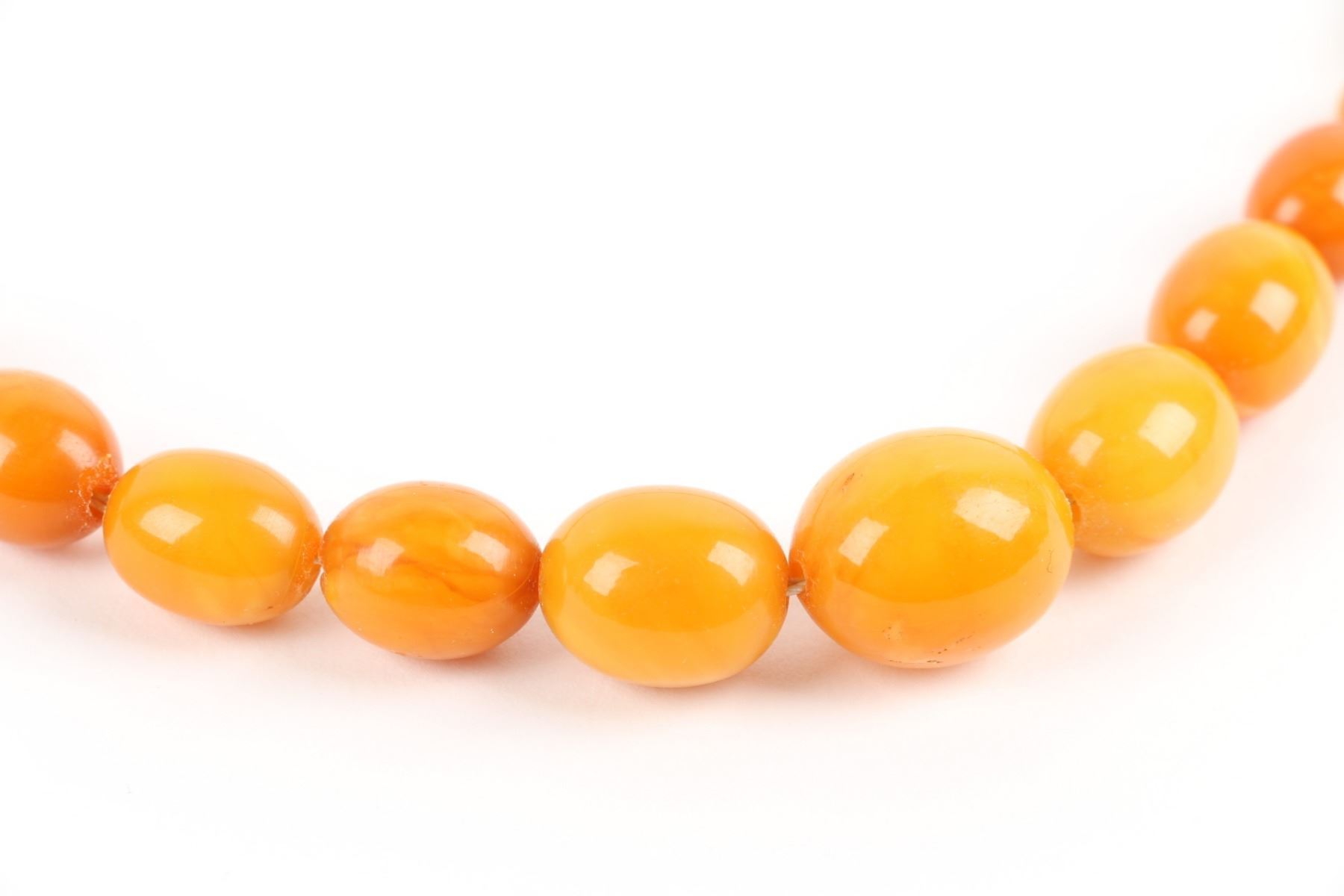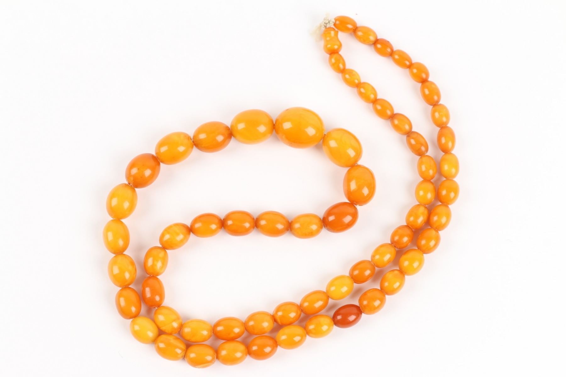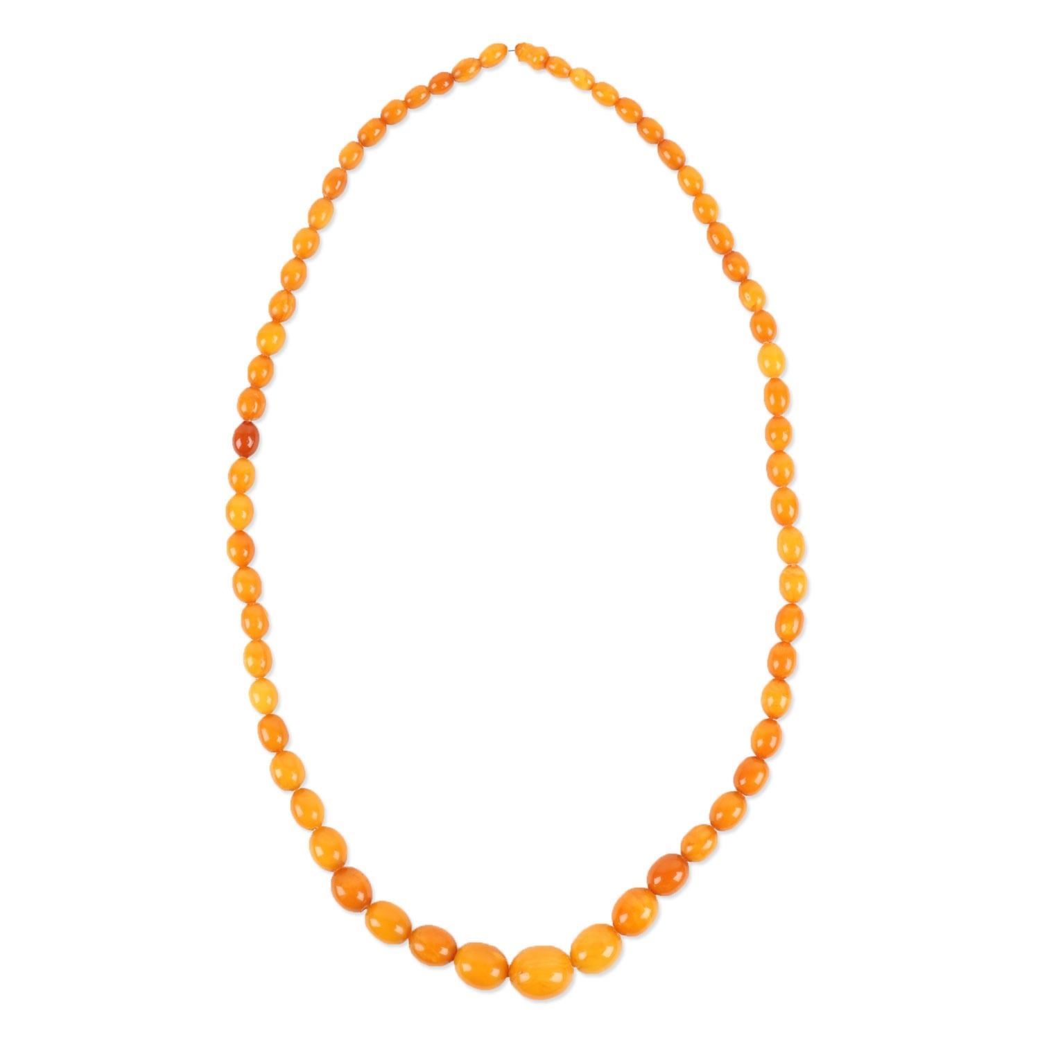Lot 25 - Strung graduated beads. "Egg Yolk" or "Butterscotch" tone. 28" l. $300-500.