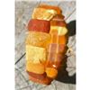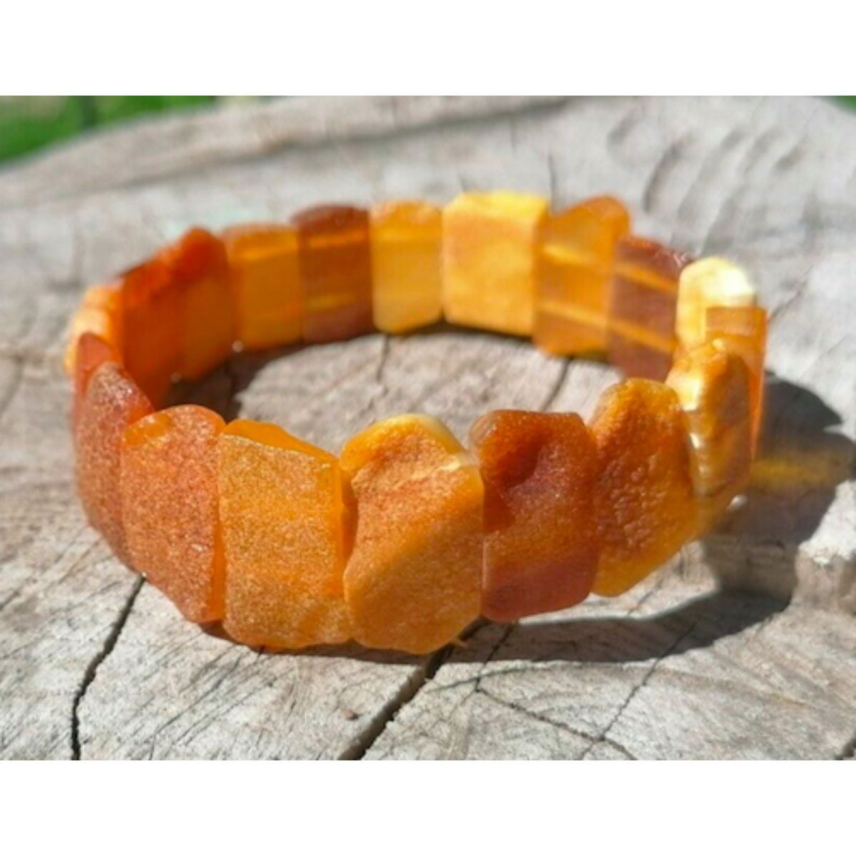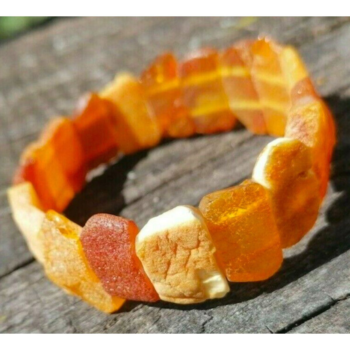 Natural raw Baltic Amber chunks in cognac, honey, orange multi-color ( 21mm size ) on 6" elastic stretch bracelet. 14.6 grams weight.Â