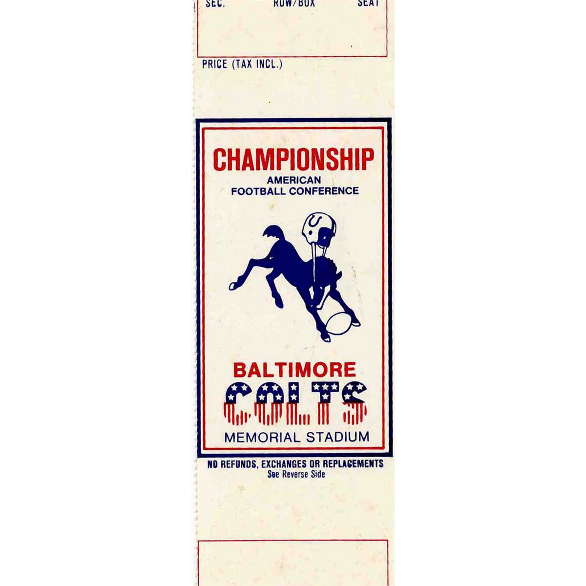 Baltimore Colts Unused 1970 Championship Ticket -- 1.5'' x 5'' -- Near Fine