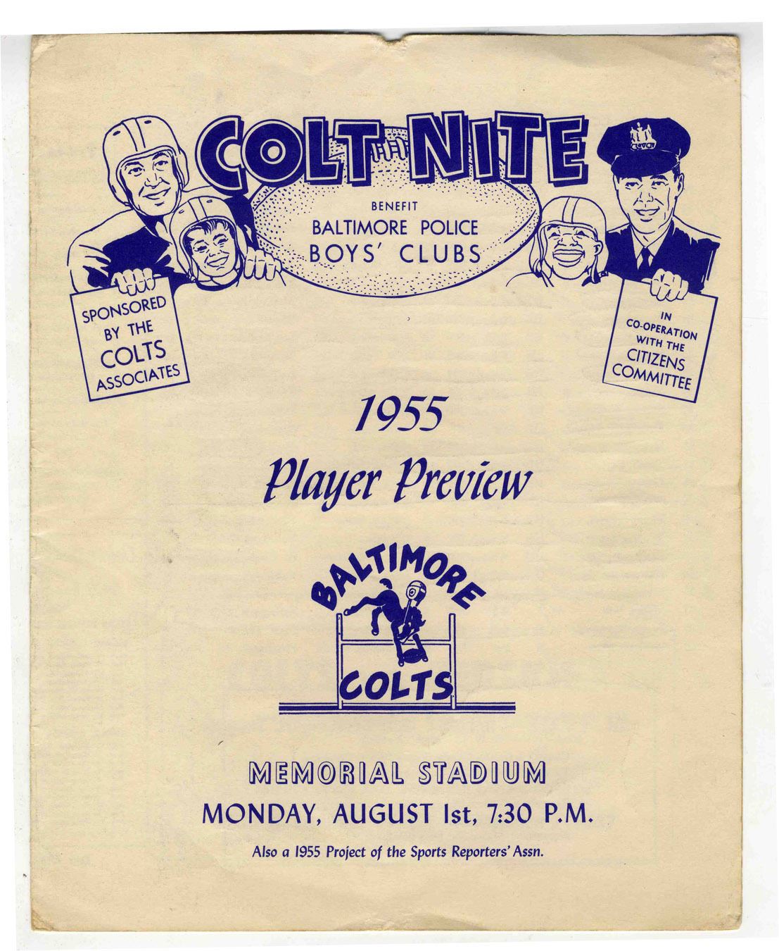 Baltimore Colts ''Colt Nite Player Preview'' -- 1 August 1955 -- 8.75'' x 11'' -- Chip to Top Edge & Pencil Markings -- Very Good
