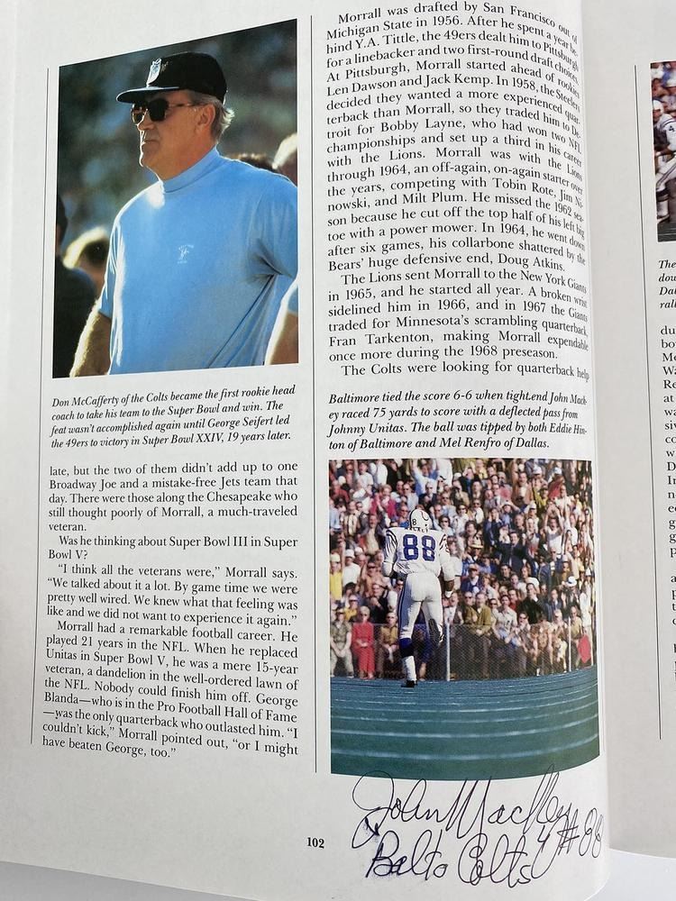 Baltimore Colts John Mackey signed Superbowl book. This book is signed on page 102