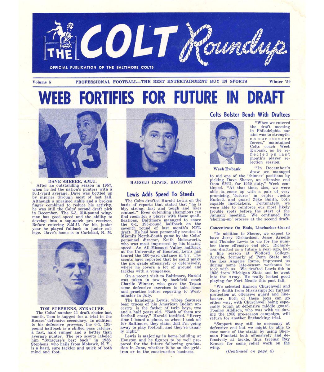 Baltimore Colts Official Publication ''The Colt Roundup'' -- Winter 1959, Volume 5 -- 3.5pp -- Edgew