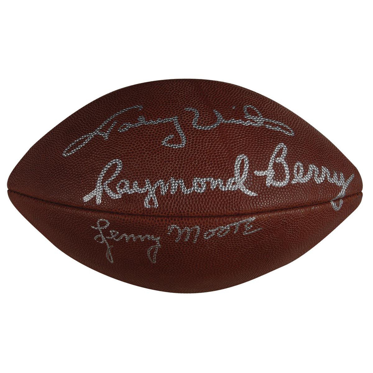 Official Wilson NFL football signed in silver ink on the side panels by Hall of Famers Johnny Unitas, Raymond Berry, and Lenny Moore. In very fine condition.