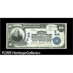 <B>Baltimore, MD</B></I> - $10/20 1902 Date Back Fr. 616/642 <B>The Second NB</B></I> Ch. # (E)414 <B>About Uncirculated.</B></I> The first of a classic pair of Date Back double denomination examples, with this piece the $10/20. The reverse of both notes is inverted. it is rare indeed to have the opportunity to obtain both notes in a double denomination pair, and it may be many years before a similar situation presents itself. Lot:15481