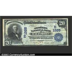 Baltimore, MD - $20 1902 Date Back Fr. 642 Western National Bank of Baltimore Ch. # 1325Several pinholes and a few minor stains are present. Very Fine.