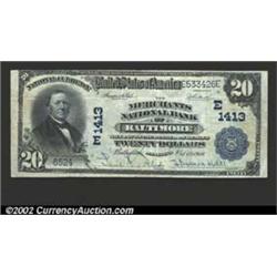 Baltimore, MD - $20 1902 Plain Back Fr. 658 Merchants National Bank of Baltimore Ch. # 1413A nice example from this bank's fourth title. Very Fine.