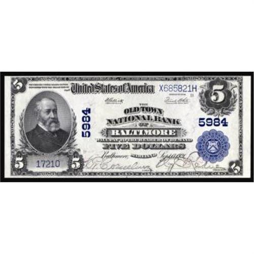 Baltimore, MD. $5 1902 Plain Back. Fr. 608. The Old Town NB. Charter #5984. CGA Choice UNC 64.