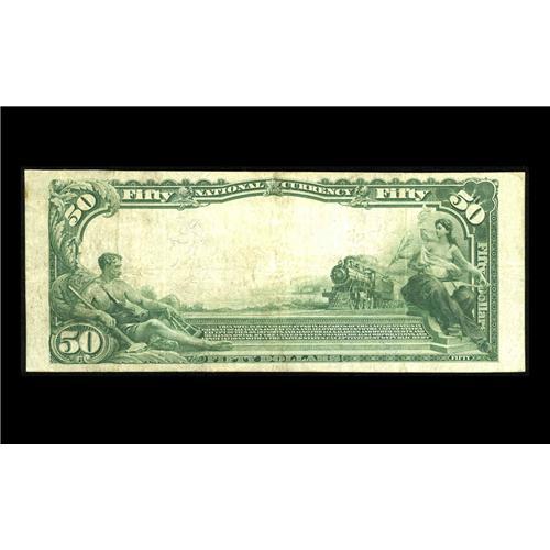 <B>Baltimore, MD</B></I> - $50 1902 Plain Back Fr. 675 <B>The Citizens NB</B></I> Ch. # 1384<BR>A nice grade high denomination example which is perfect for type. <B>Very Fine.</B></I>