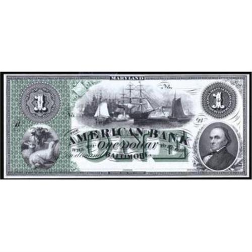 Baltimore, MD. The American Bank. Proof. $1.