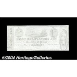 Baltimore, MD- The Chesapeake Bank $1 May 2, 1842 UNL Shank 5.25.2P ProofAn attractive Proof example on india paper, with this design unlisted in the Haxby reference. Uncirculated. <BR><BR><B>Important notice:</B> Heritage usually auctions material at the rate of 200-250 lots per hour. On some occasions eBay Live bid software or the Internet may not be able to keep up with the pace of the auction. We recommend placing a realistic absentee bid now as insurance to avoid disappointment. Occasionally the auctioneer may eliminate or reject an eBay Live bid, and the auctioneer may also reopen a lot after the close of the eBay live bidding (usually because we missed an audience bid), and may reject your bid even if it shows you as the winning bidder. By bidding via eBay Live, you agree that Heritage may award the lot to another bidder at its sole discretion under the circumstances described above or any other reasonable circumstances. Since eBay bids are not shown to us until we open the lot on the floor, we treat those bids just like floor bids. In most cases the floor responds before the eBay bid is presented to us, due to Internet lag time, so for consistency we have made it a policy that floor bids are always considered first over tie eBay live bids. Also please note that all Heritage lots purchased through eBay Live carry a 20% Buyer's Premium. Please make sure you read the Terms and Conditions before you bid. <BR><BR><B>IMPORTANT ANNOUNCEMENT ABOUT RESERVES:</B> Heritage now divulges all reserves on its web site 7 days before every auction. If you want to know whether the reserve on this lot has been met, and if not, what the reserve amount is, please visit this lot page on the HeritageCoin.com web site, or email: bid@HeritageGalleries.com