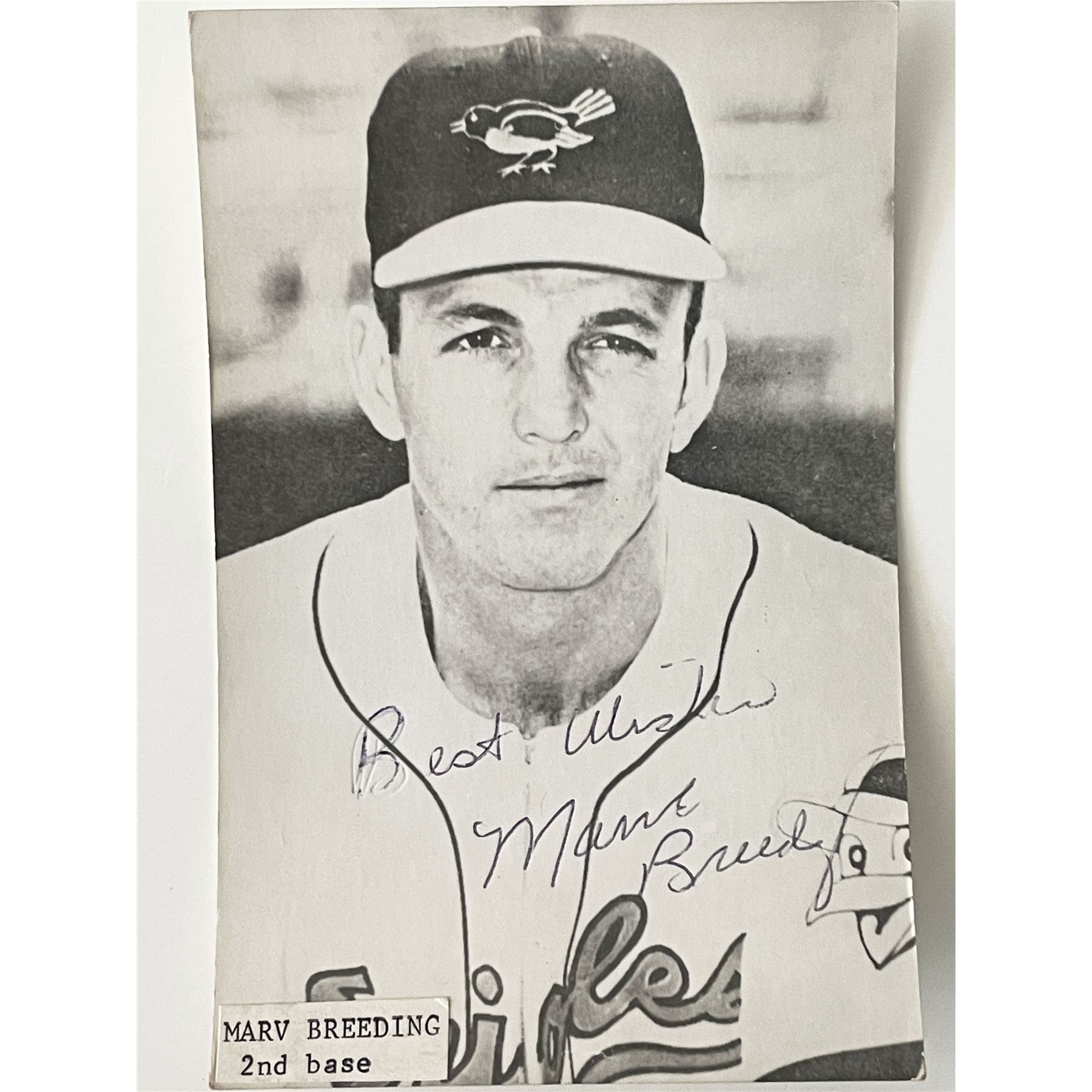 Baltimore Orioles Marv Breeding signed photo. 3x5 inches