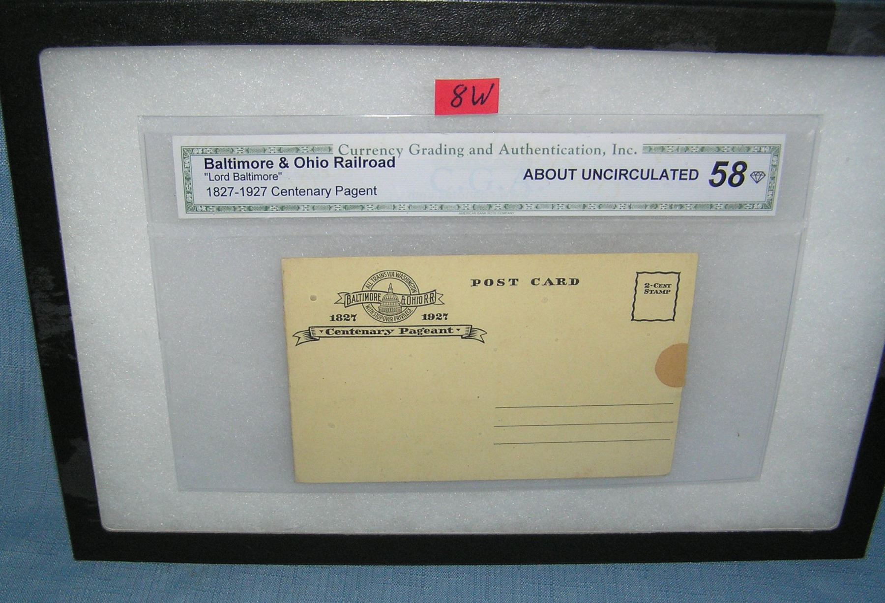 Baltimore and Ohio railroad advertising post card graded AU est. value $40.00-$50.00