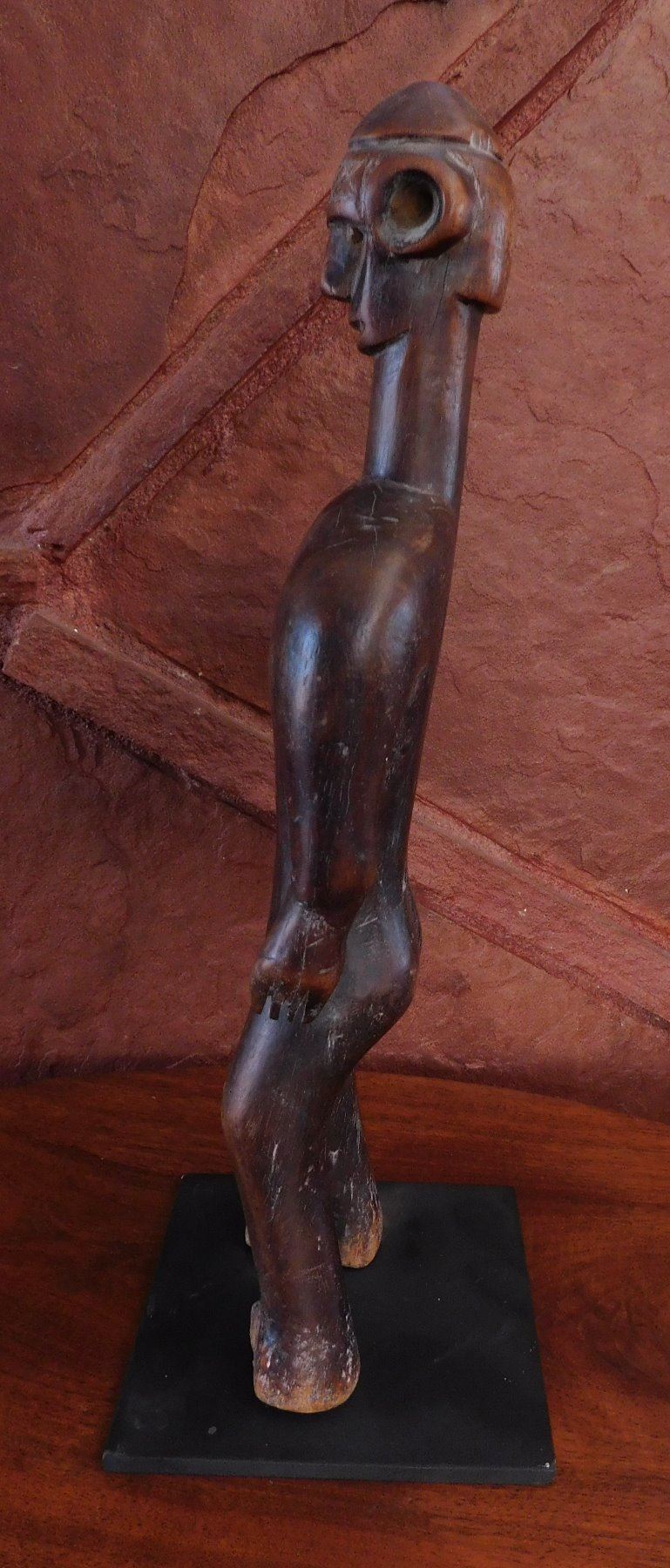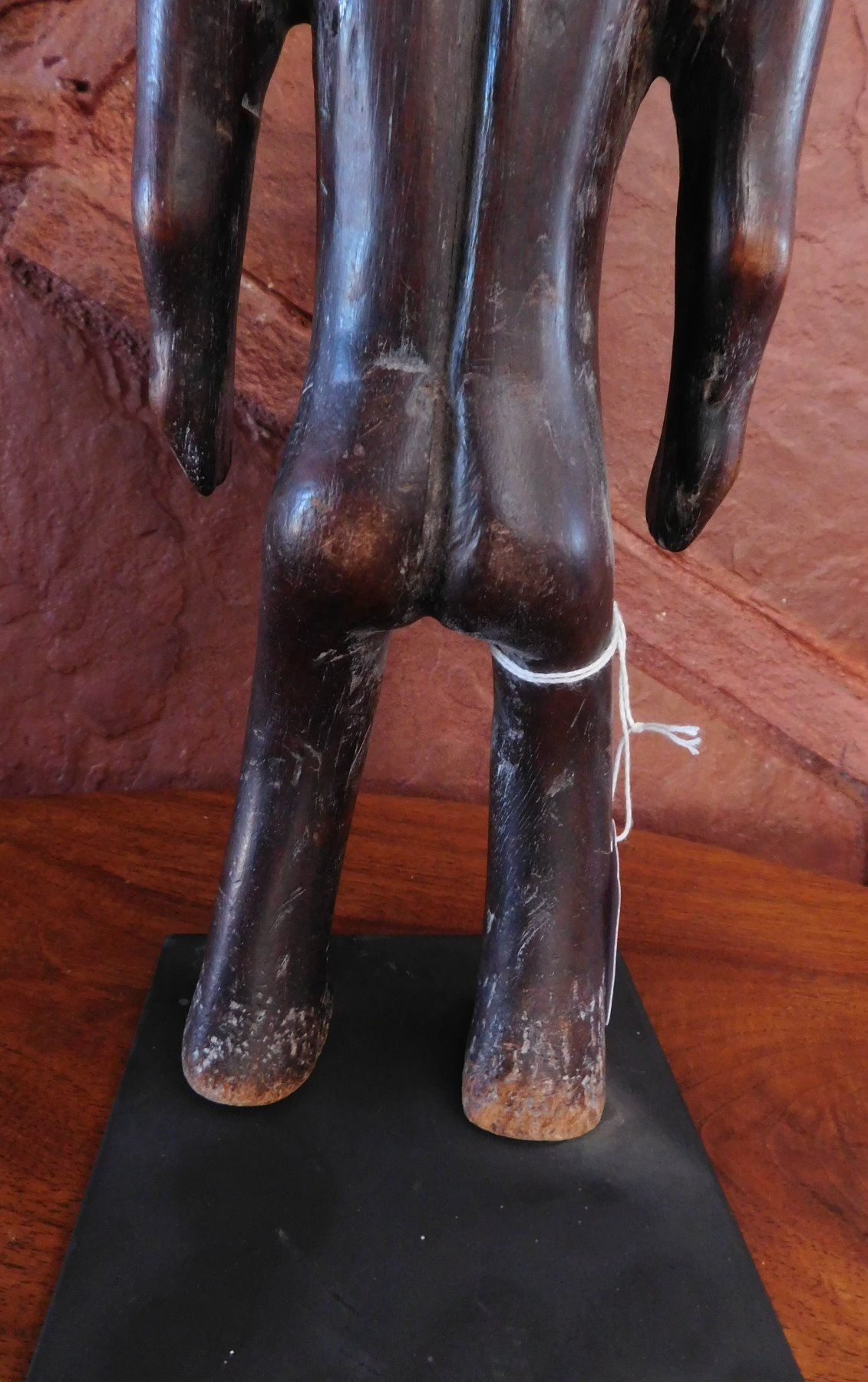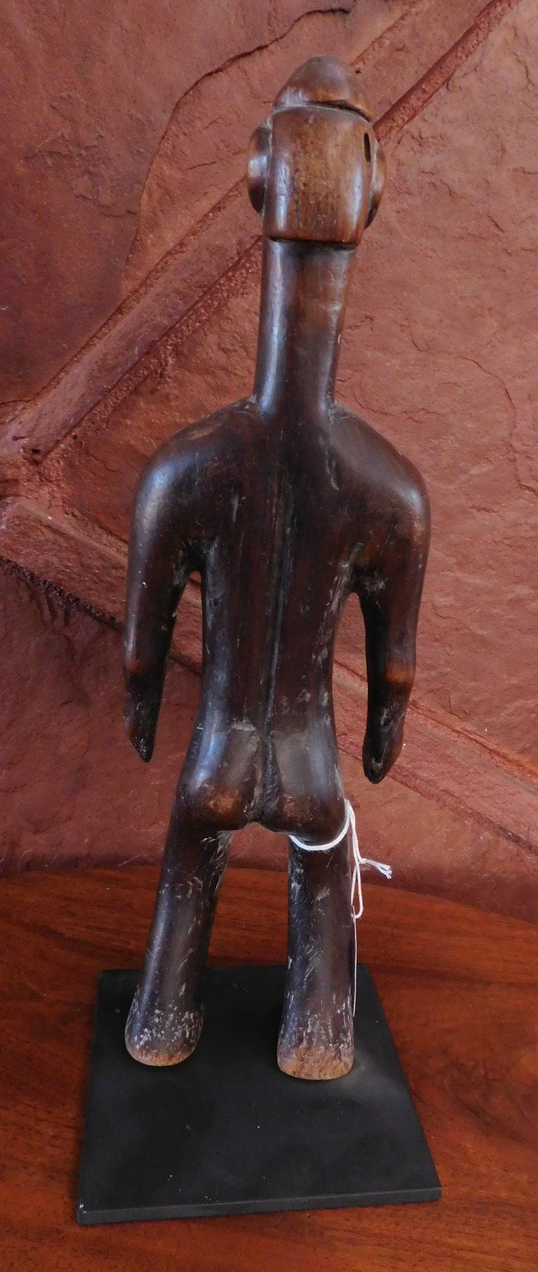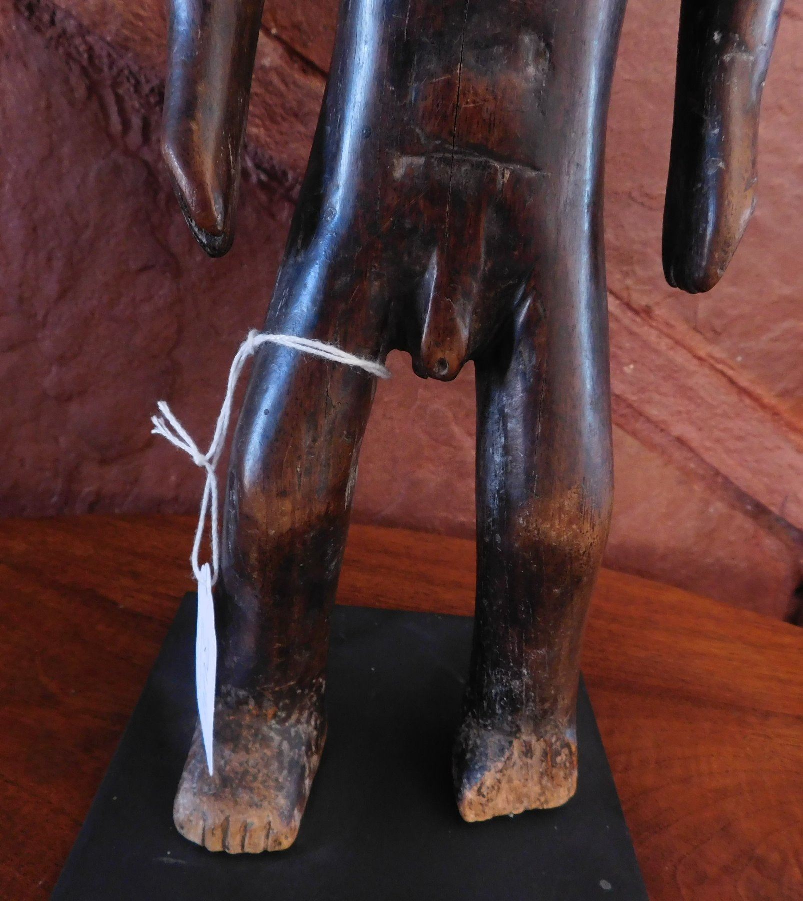 Bambara Figure w/Stand, 20th century item. Made of hardwood and iron stand, the item measures 5" x 5" x 14.5" w/stand. Bambara, Mali. Fine patina. Condition: Good, wear to foot, see images. Shipping: $28.50 w/insurance and signature, due to size and weight.