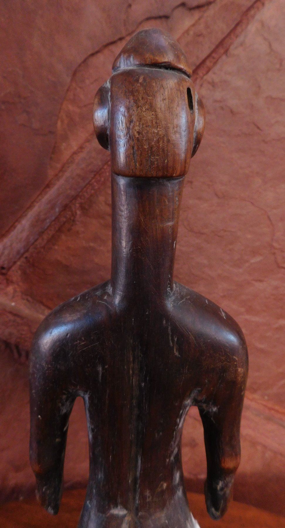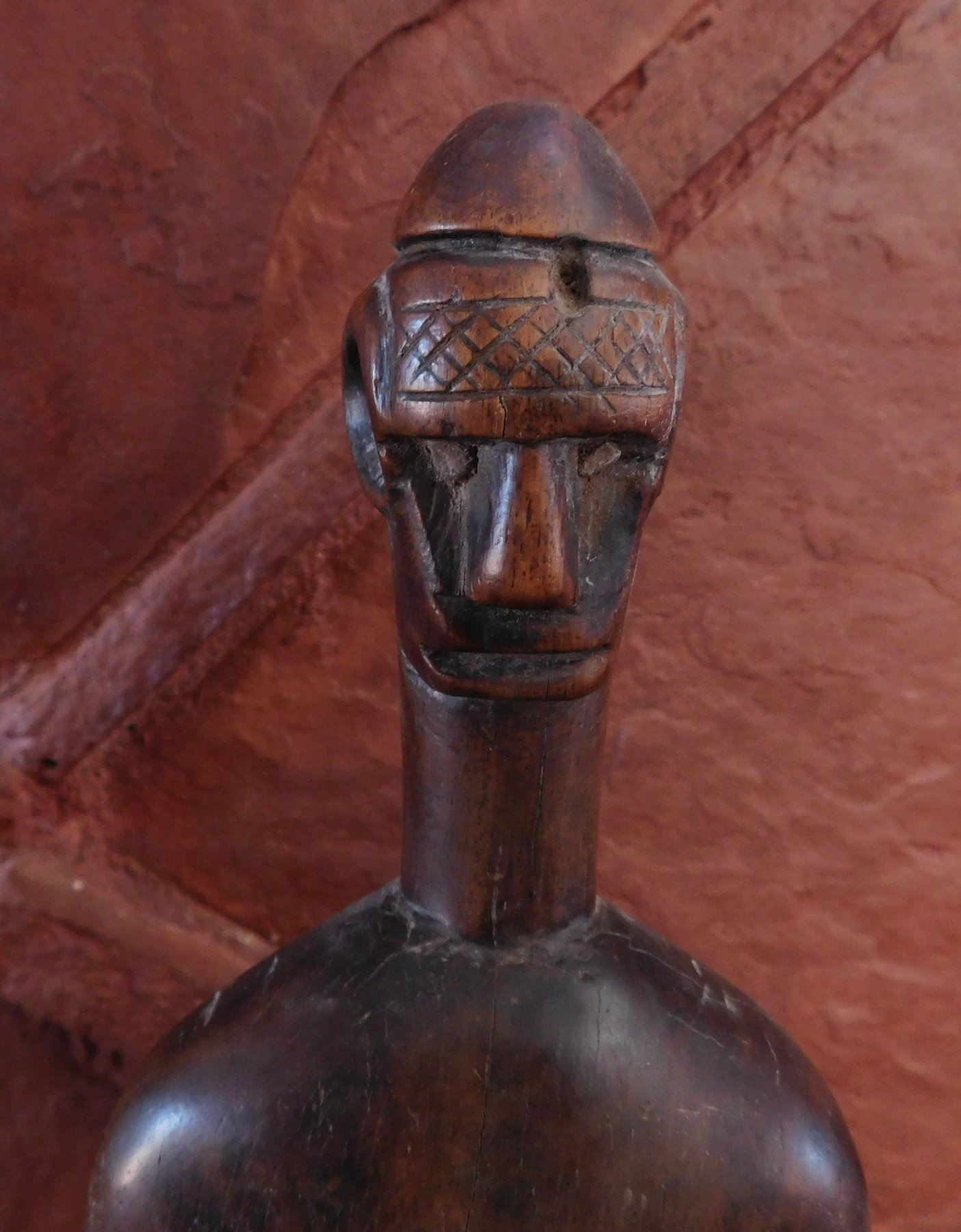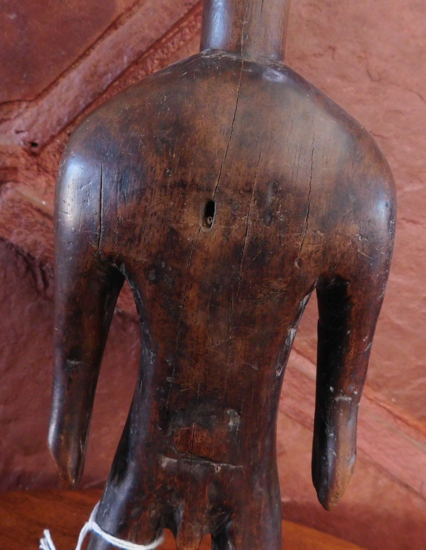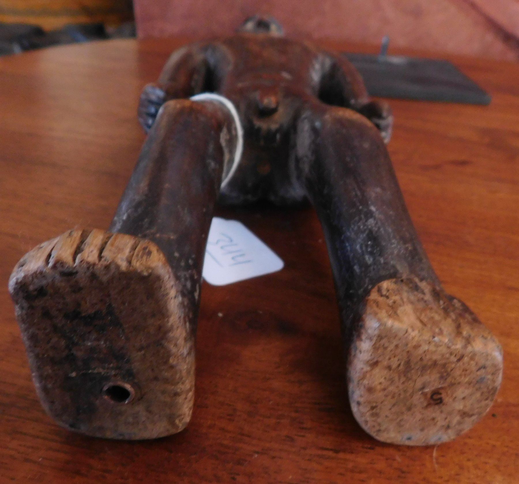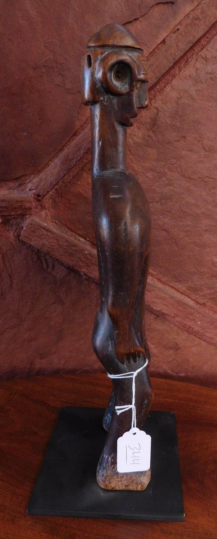 Bambara Figure w/Stand, 20th century item. Made of hardwood and iron stand, the item measures 5" x 5" x 14.5" w/stand. Bambara, Mali. Fine patina. Condition: Good, wear to foot, see images. Shipping: $28.50 w/insurance and signature, due to size and weight.