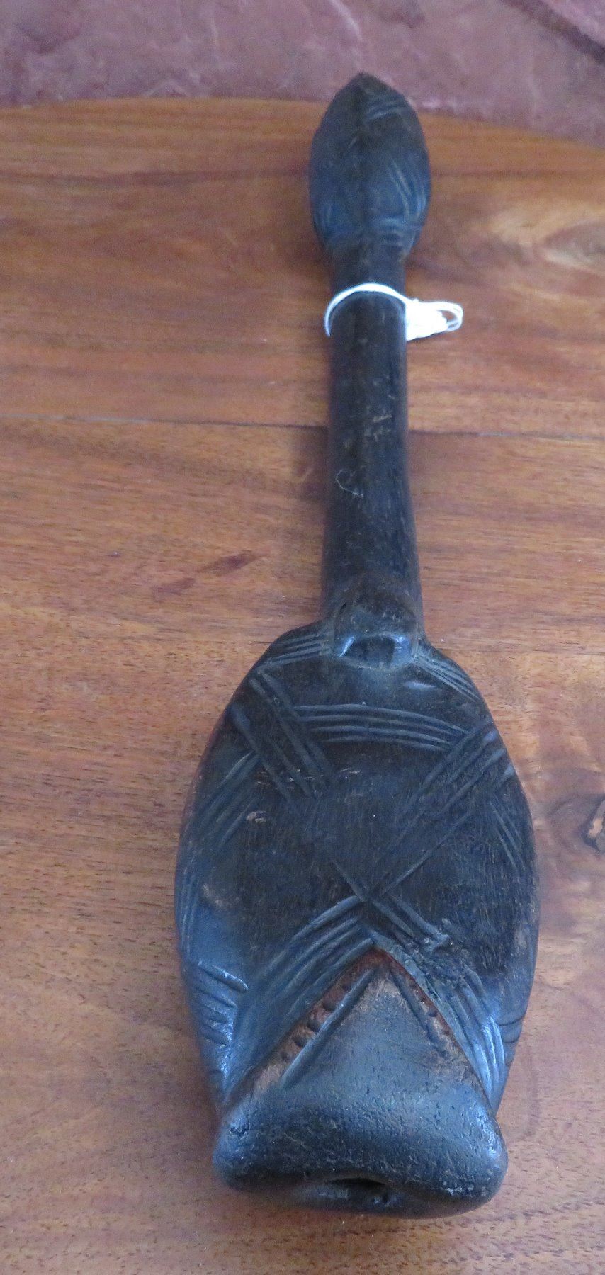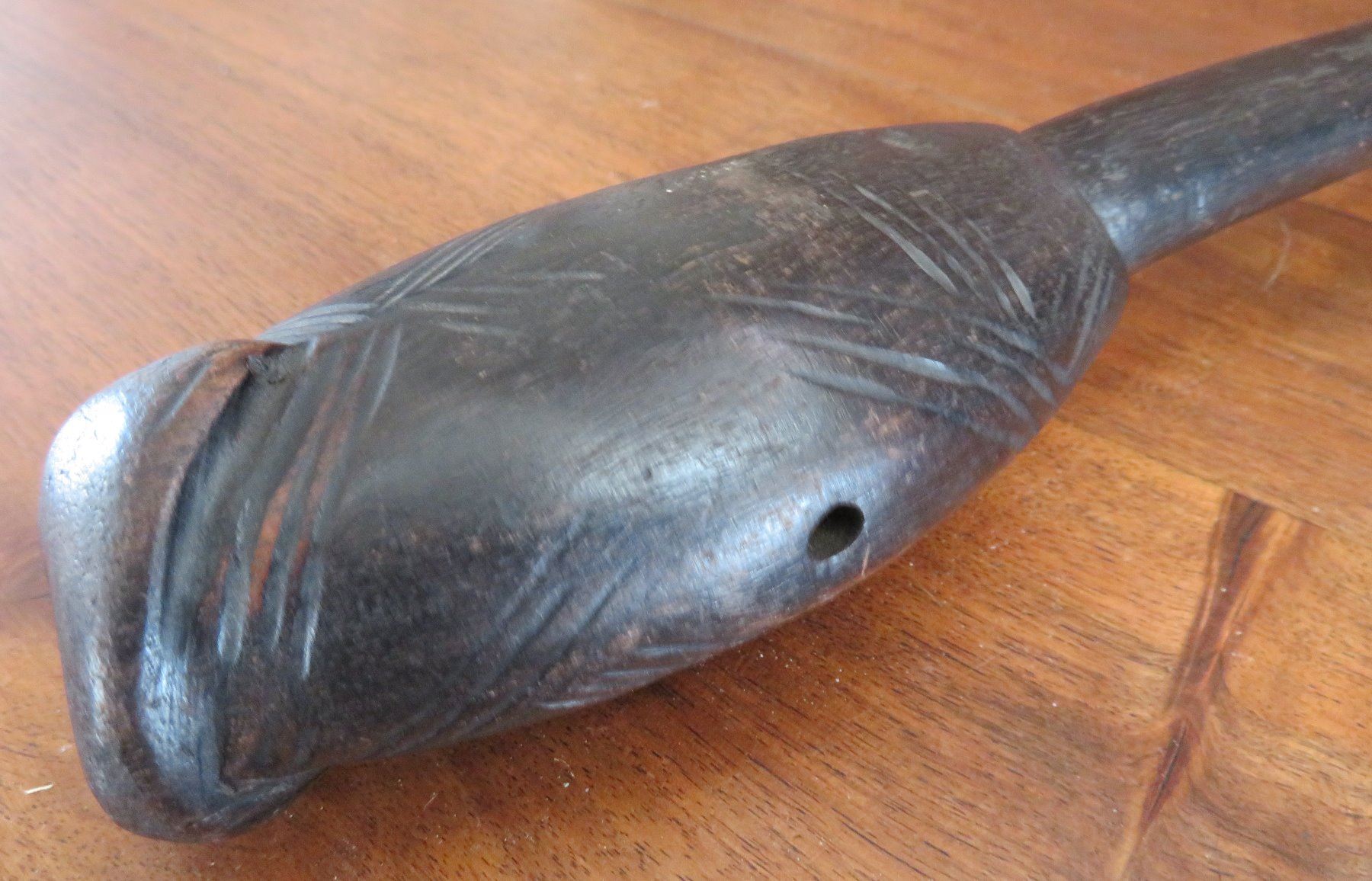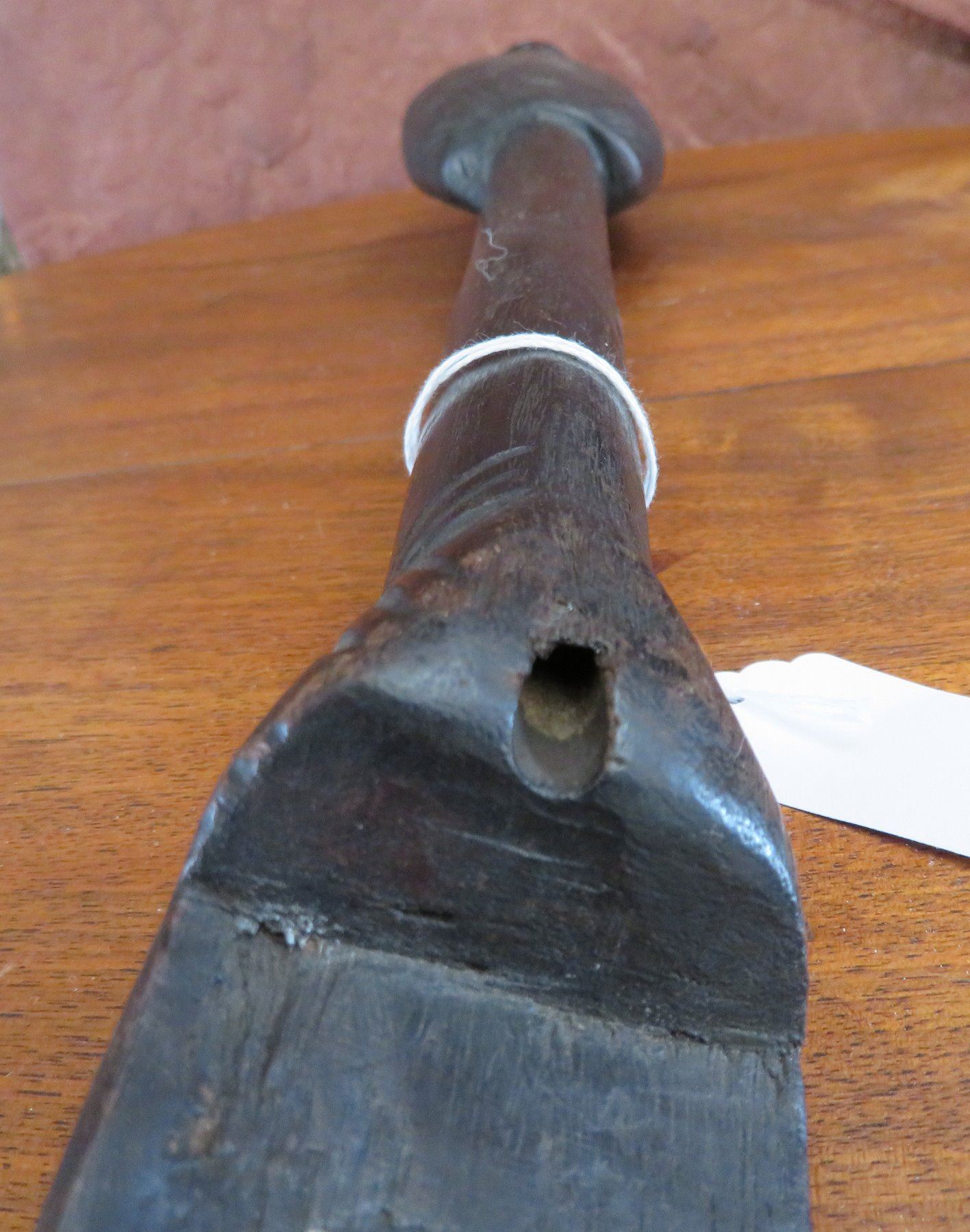 Bambara Musical Instrument, early 20th century item. Made of wood, the item is 19 1/2" long. Mali. Appears to be a flute. Condition: Good patina, see images. Shipping: $26.50 w/insurance and signature, due to length.