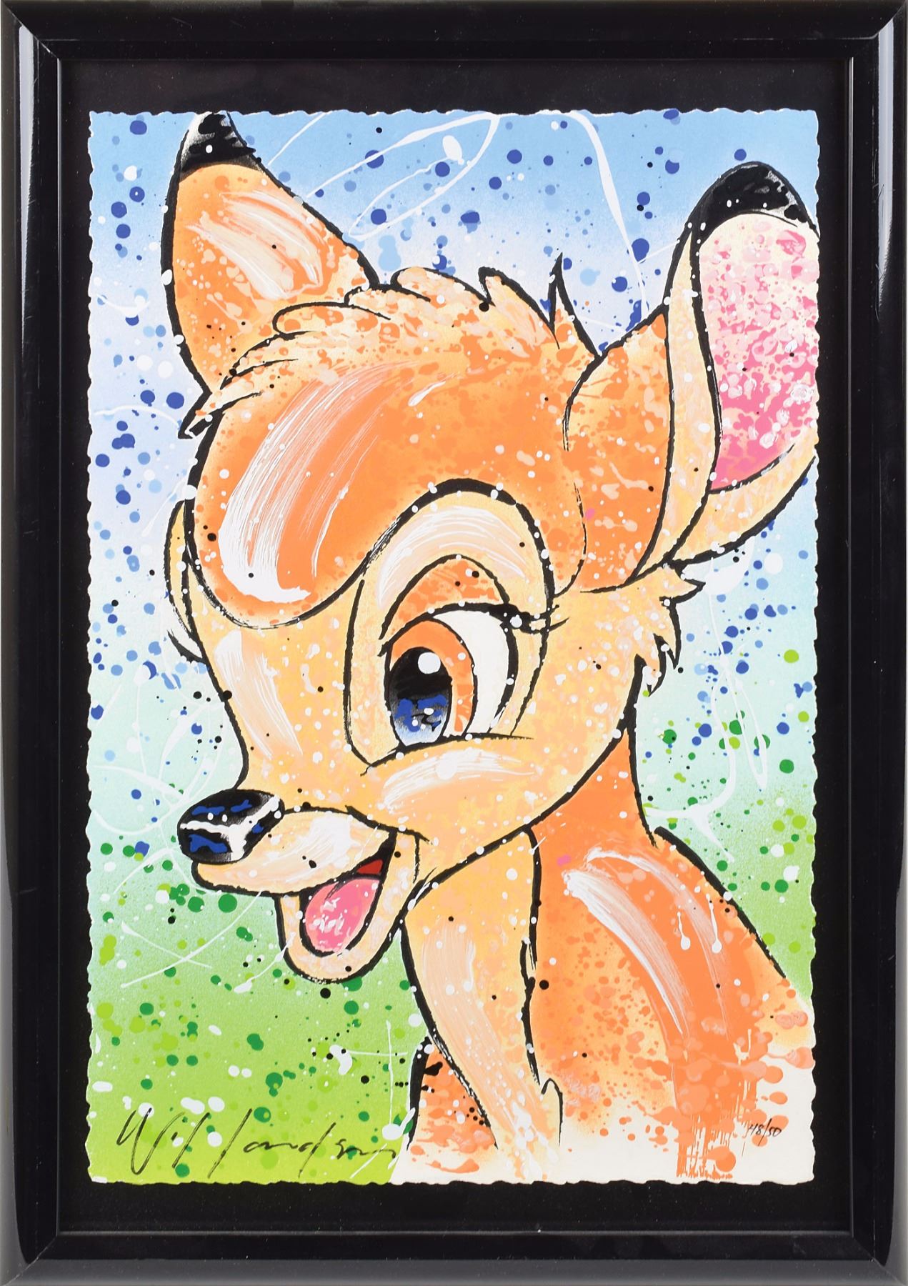 Color limited edition 11 x 16.5 serigraph of Bambi by David Willardson entitled 'The Buck Stops Here,' numbered 48/50, signed in black ink, "Willardson." Framed to an overall size of 14 x 20. In fine condition.