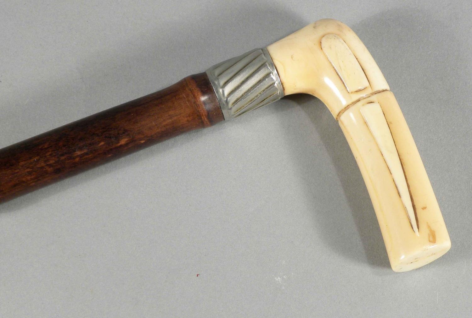 Bamboo Cane with ivory handle. Nickel plated collar, no tip. Very good condition. 41 inches long.