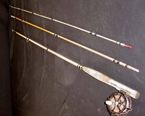 Bamboo Fly Rod, Cork Handle, with no name reel, one tip, 113.5" long