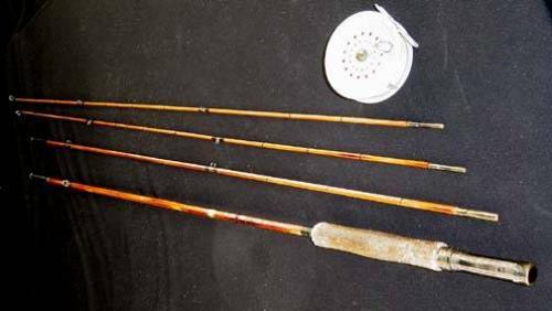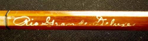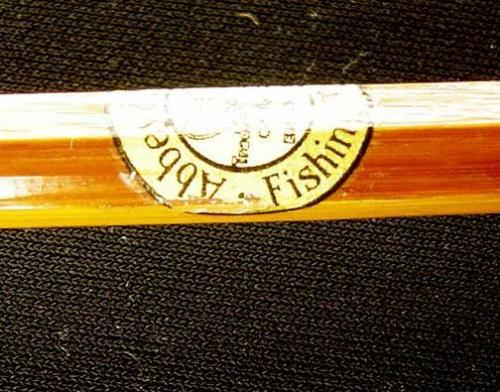 Bamboo Fly Rod, Cork Handle, with no name reel, two tips, "Abbey & Imbrie Fishing & Tackle - Rio Grande Deluxe", 108.5"