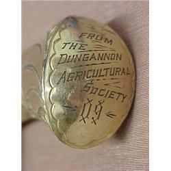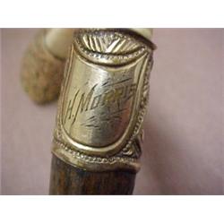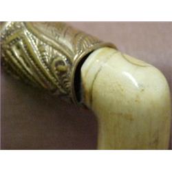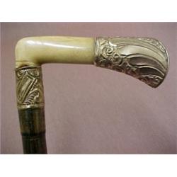Bamboo carved walking stick with gold filled and bone handle, engraved "From the Dungannon Agricultural Society" on handle C.1900 Estimate 100/200
