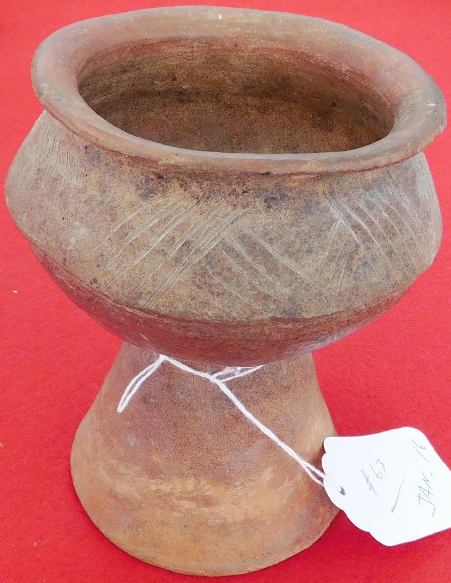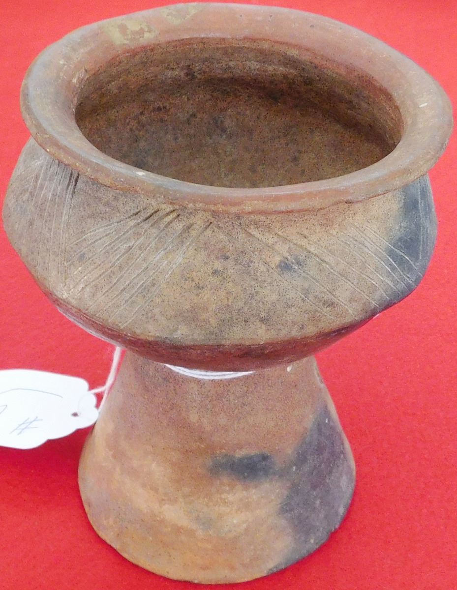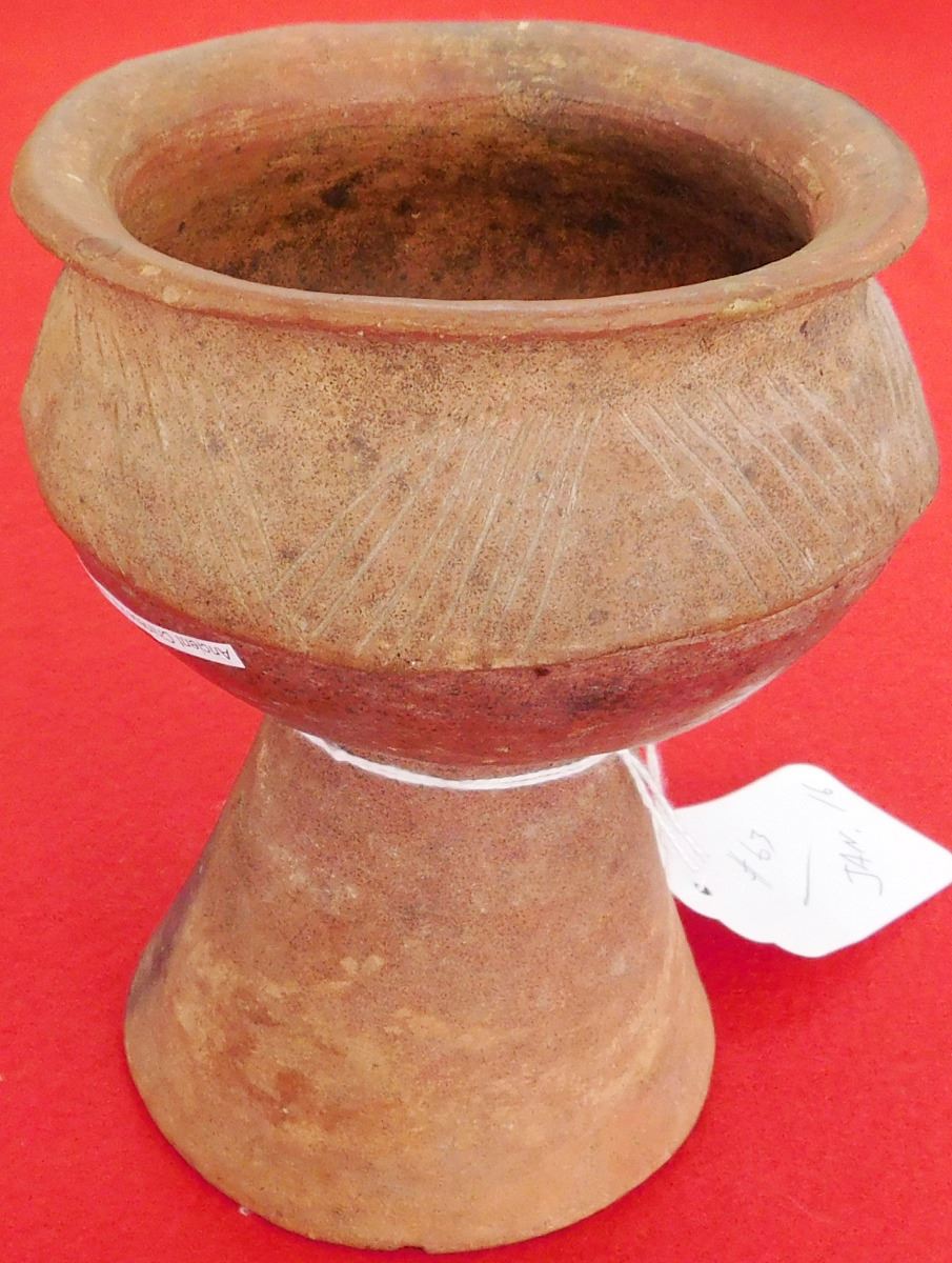 Classic old pedestal pot, with engraving, and good dendrite growth. This item is estimated to be 2500 years old and measures 6 x 5 inches. Condition: Fine condition, see images. Shipping: $20.00