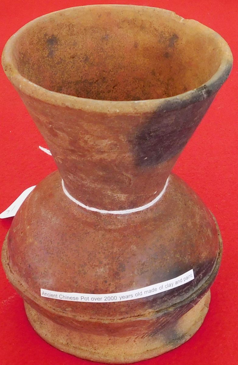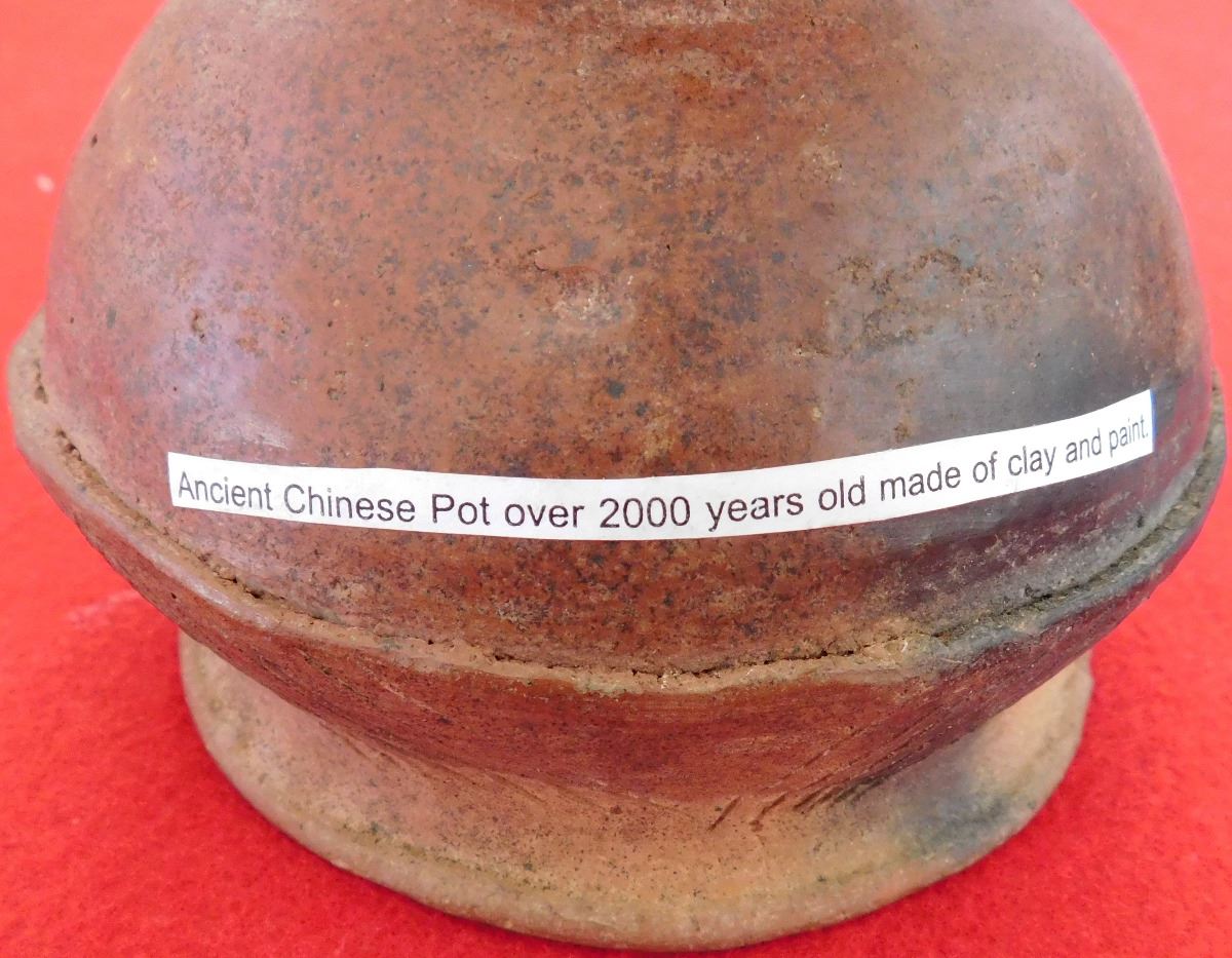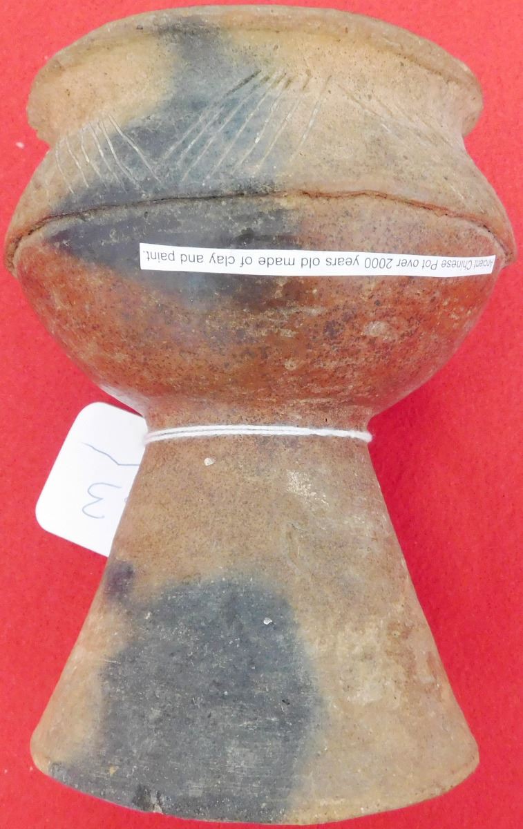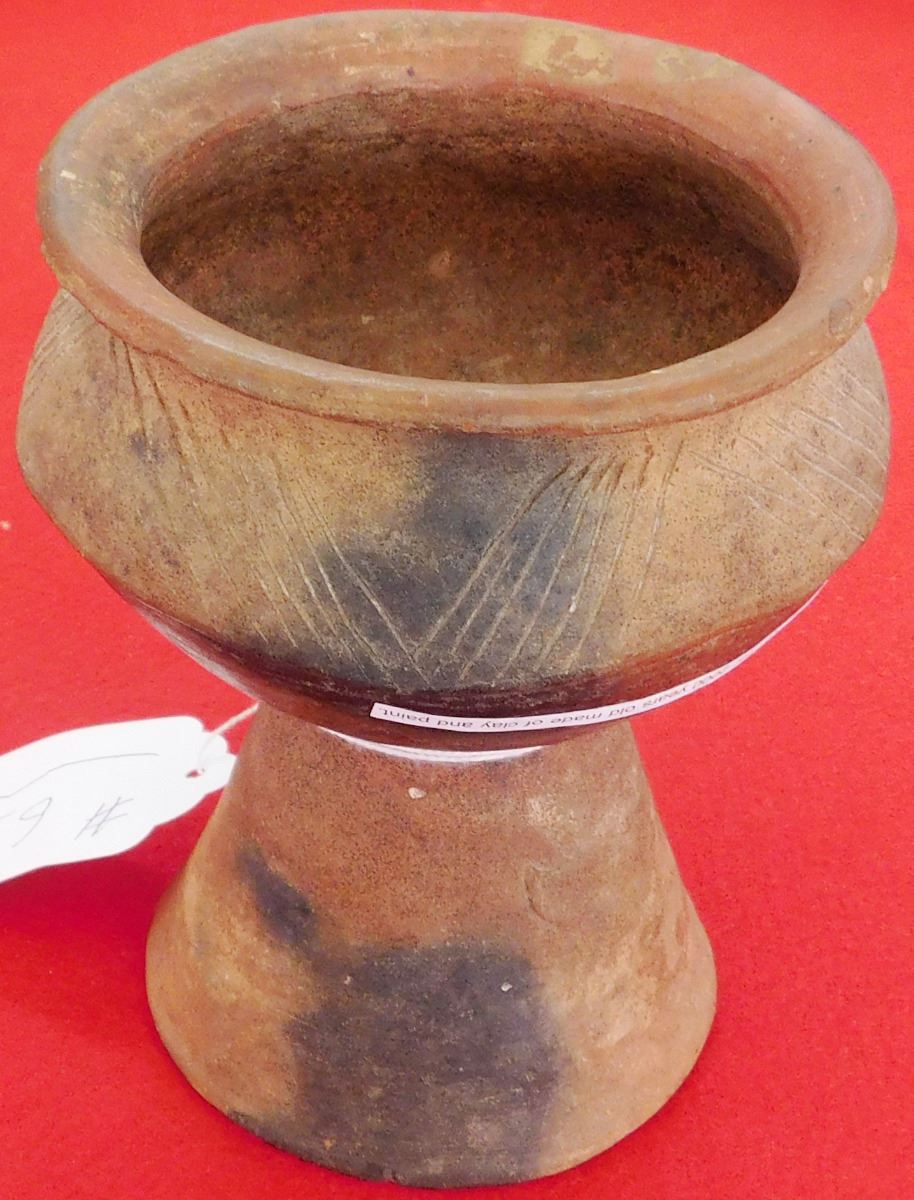 Classic old pedestal pot, with engraving, and good dendrite growth. This item is estimated to be 2500 years old and measures 6 x 5 inches. Condition: Fine condition, see images. Shipping: $20.00