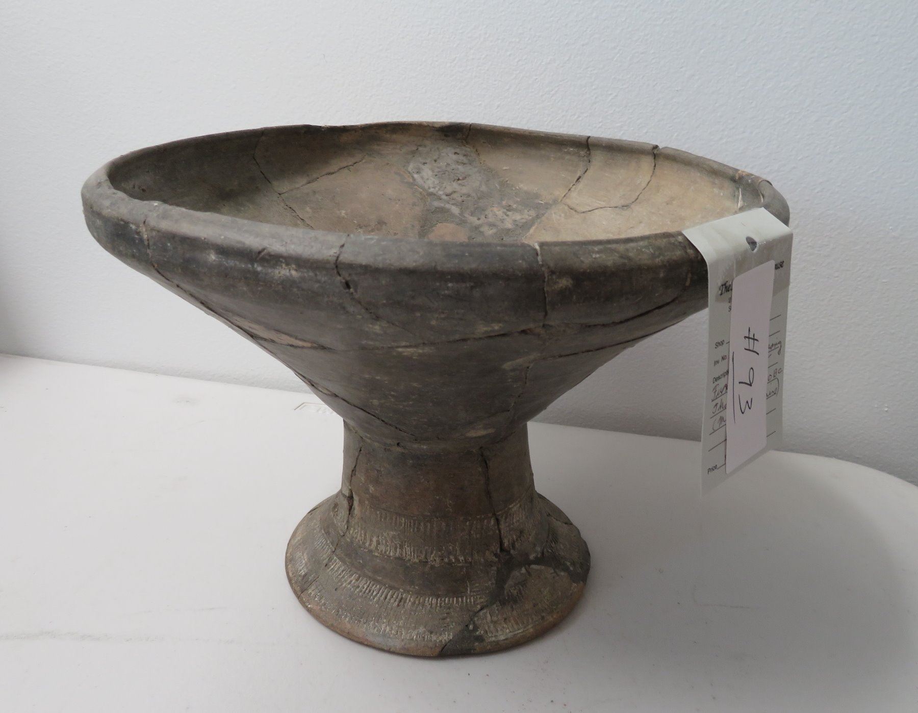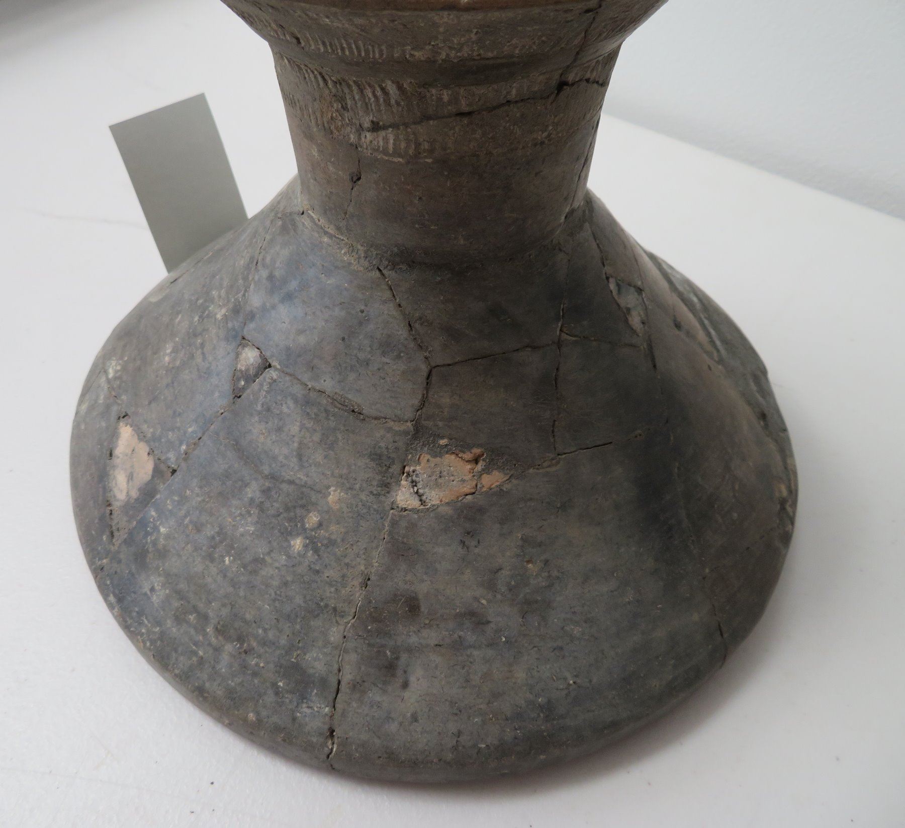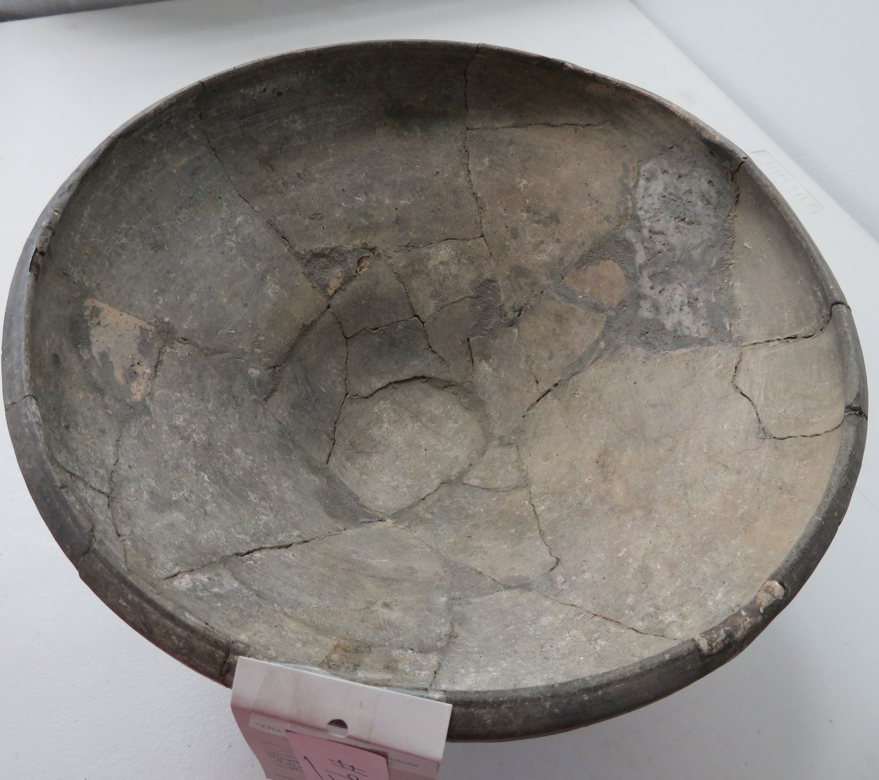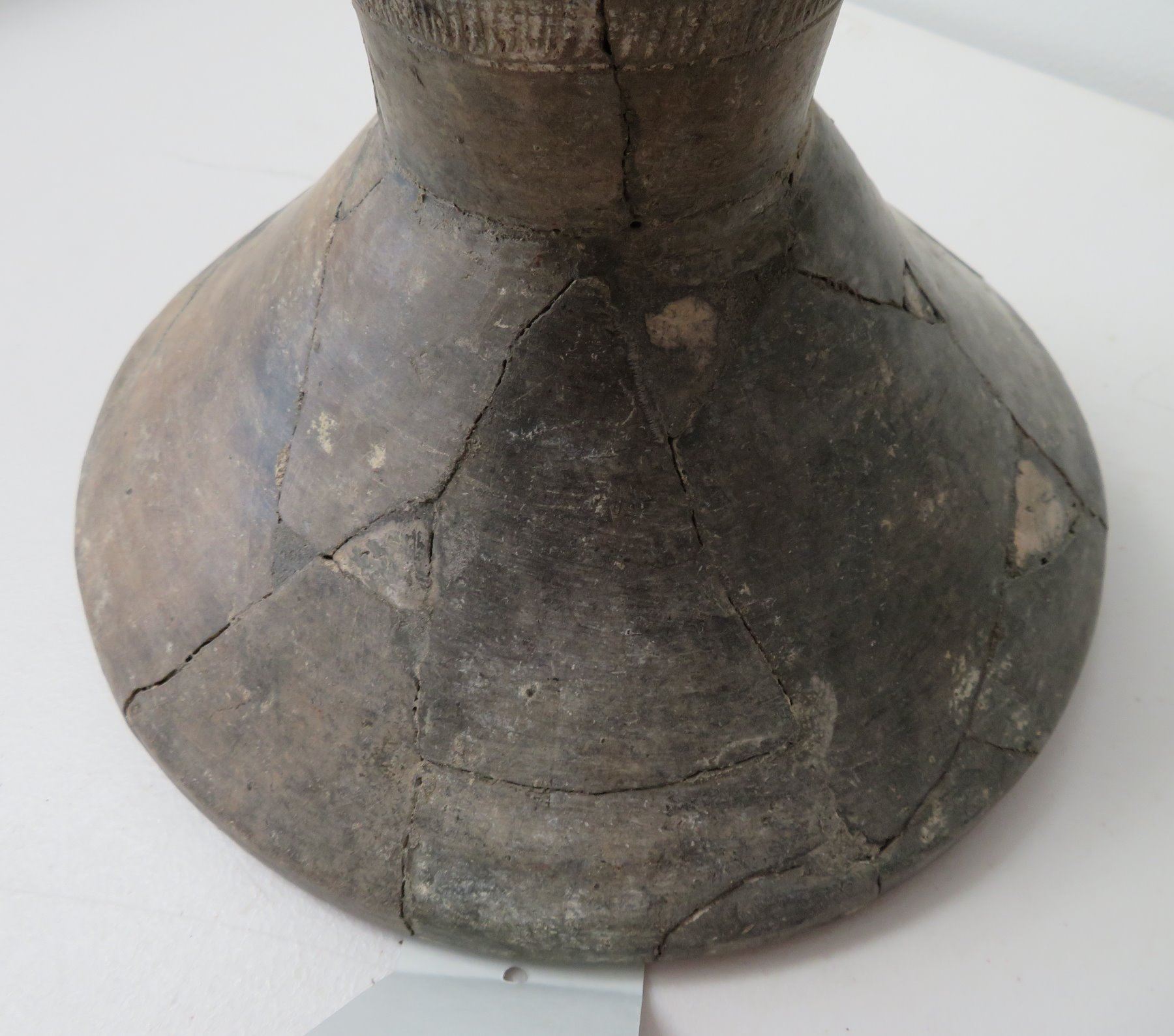 Ban Chang Pot, pre-historic item. Made of clay, the item measures 11" x 8". Southern China. Condition: Broken and reassembled, see images. Shipping: $50.00 USA estimate only, due to size and weight, w/insurance and signature, double-boxed.