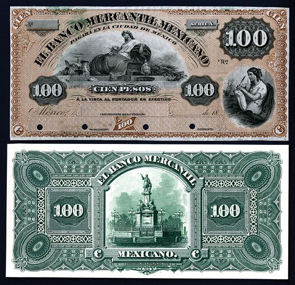 Mexico. 1882. Series A. P-S247p. 100 Pesos. Obverse and reverse proofs printed on India paper mounted on card stock. Choice UNC though some minor discoloration due to water is apparent. Still a very rare note. ABNC.