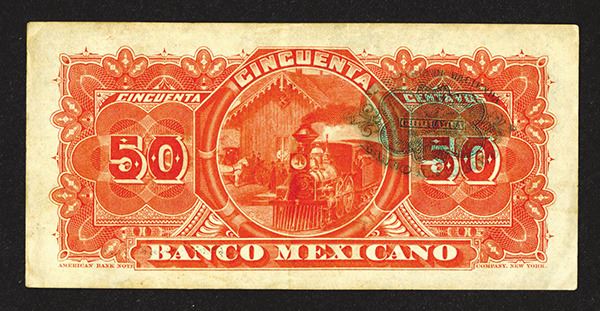 Chihuahua, Mexico, 1888, 50 Centavos, Ser. A, P-S152a, BK-CHI-35, M119a, Issued banknote, black on light yellow overprint, goats at right, back orange, S/N 09153, PMG graded About Uncirculated 55. ABNC. Rare in high grade.