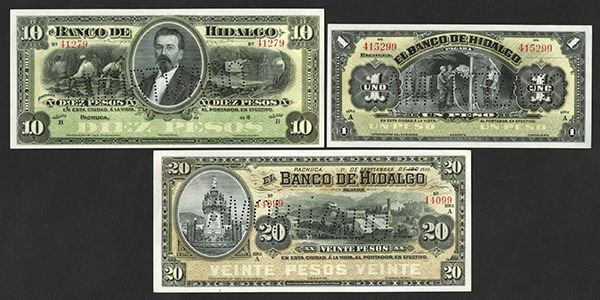 Mexico. 1, 10, 20 Pesos. P-S304b; S306c; S307 not listed in this form. All Choice Uncirculated. ABNC. 3 pieces.