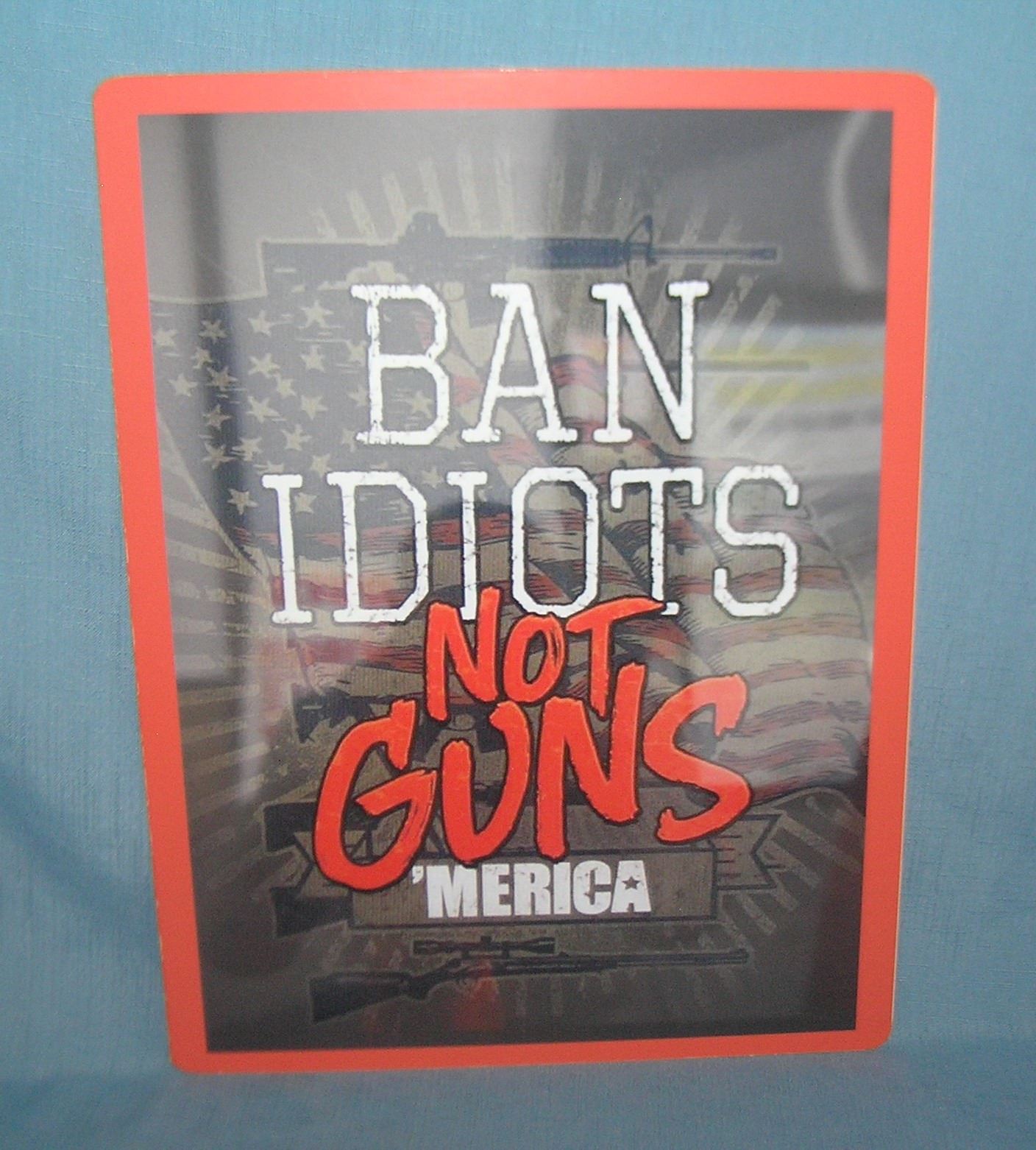 Band Idiots not Guns America retro style advertising sign printed on PVC hard board these signs are auctioned for there decorative and display purposes 12 by 16 est. value $50.00-$60.00