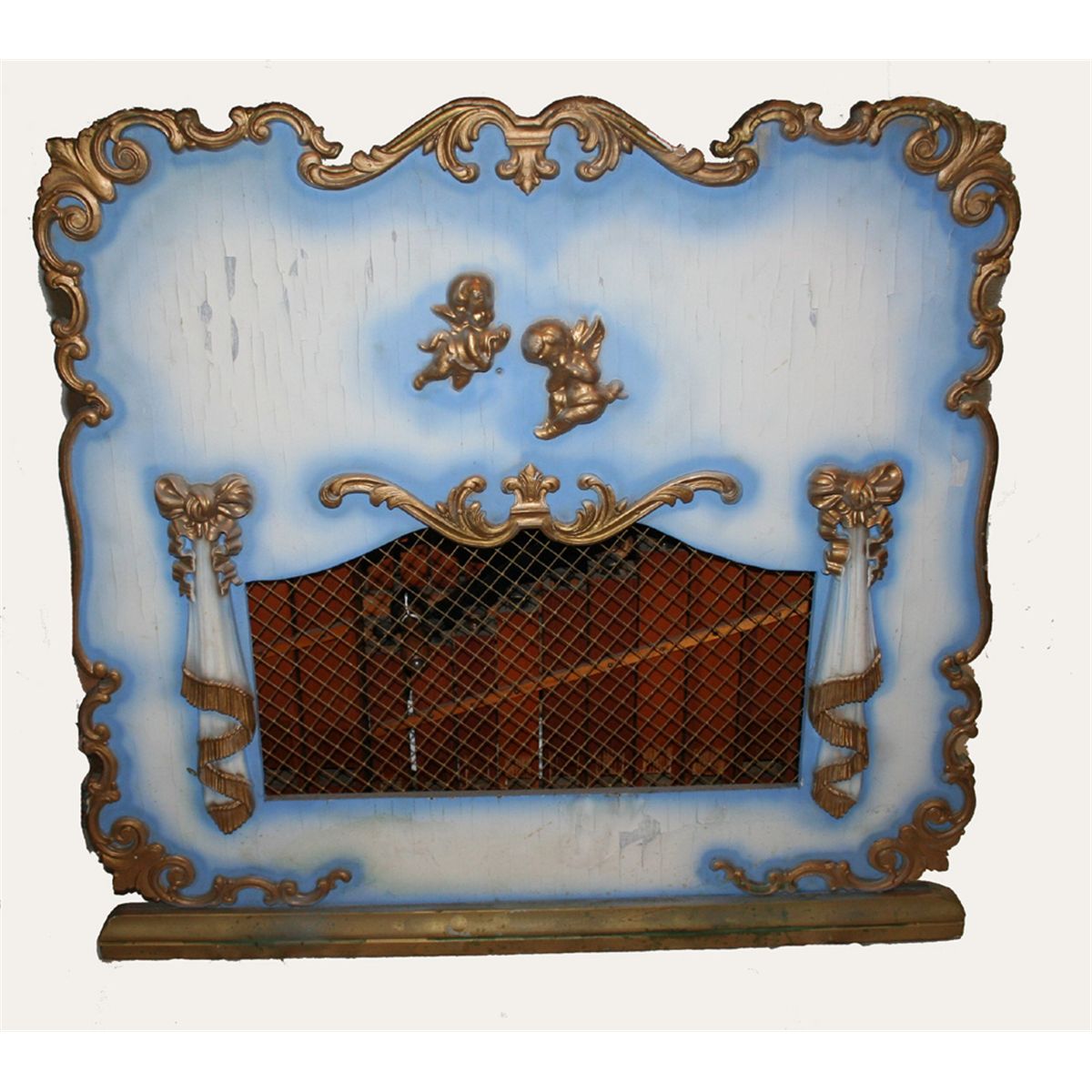 Mechanical band organ built by the late Lee Edwards of Georgia. Band organ box measures approx. 21.5" W x 15" D x 19" H and sits behind a 25" W x 27" H façade. Some blistering and peeling of paint. Hand cranked.