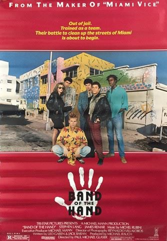 Band of the Hand (TriStar Pictures, 1986). One Sheet. Starring: Stephen Lang and Leah Michael Carmine. There are folds, creases, paper loss and edge wear damage. Very Fine. (27" X 40").