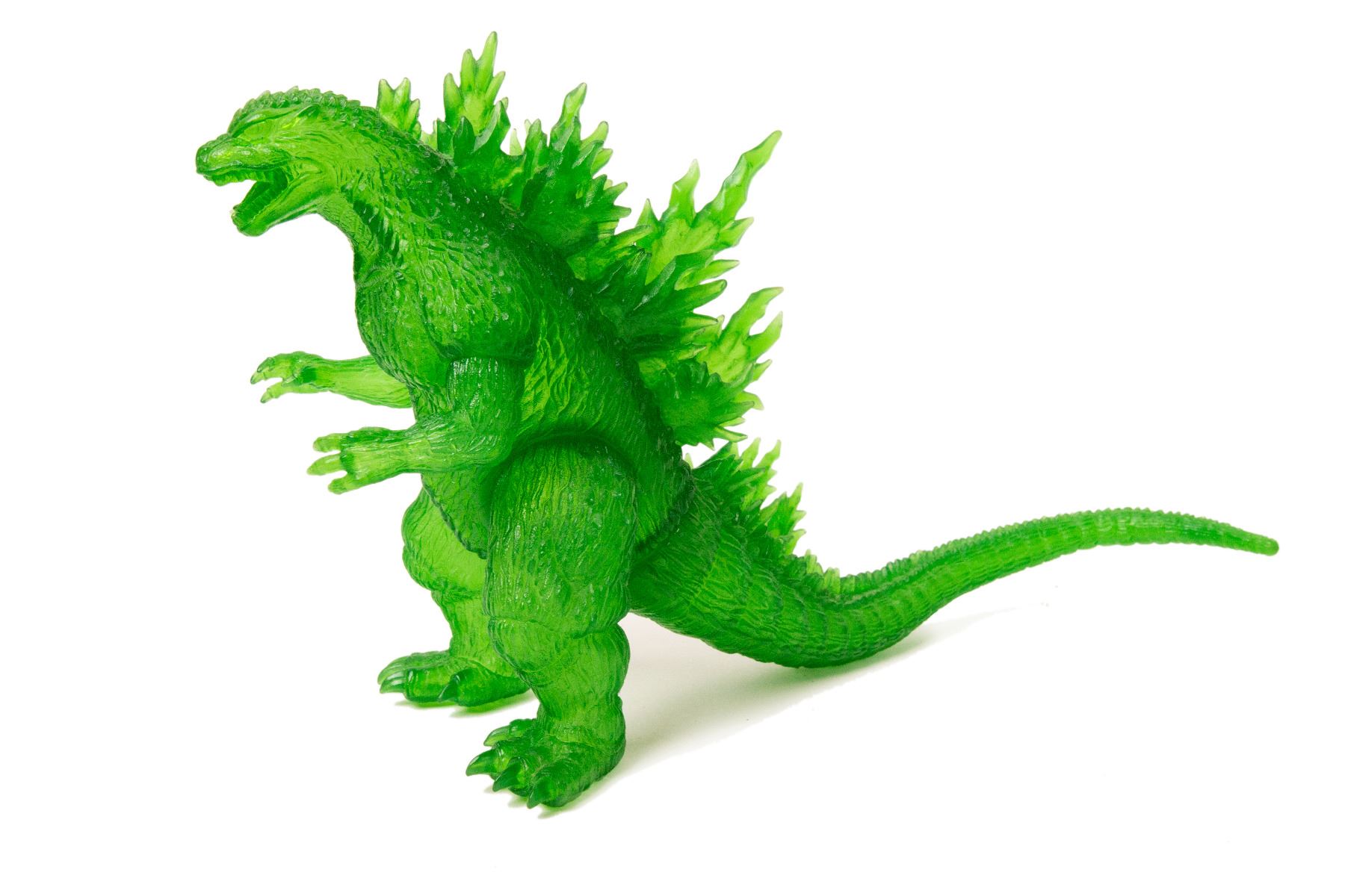 2001. Bandai Vinyl Figure (“Green Crystal” Clear Godzilla Contest Prize 6. 5” tall. VG+. THIS FIGURE WAS NOT ISSUED WITH TAG.