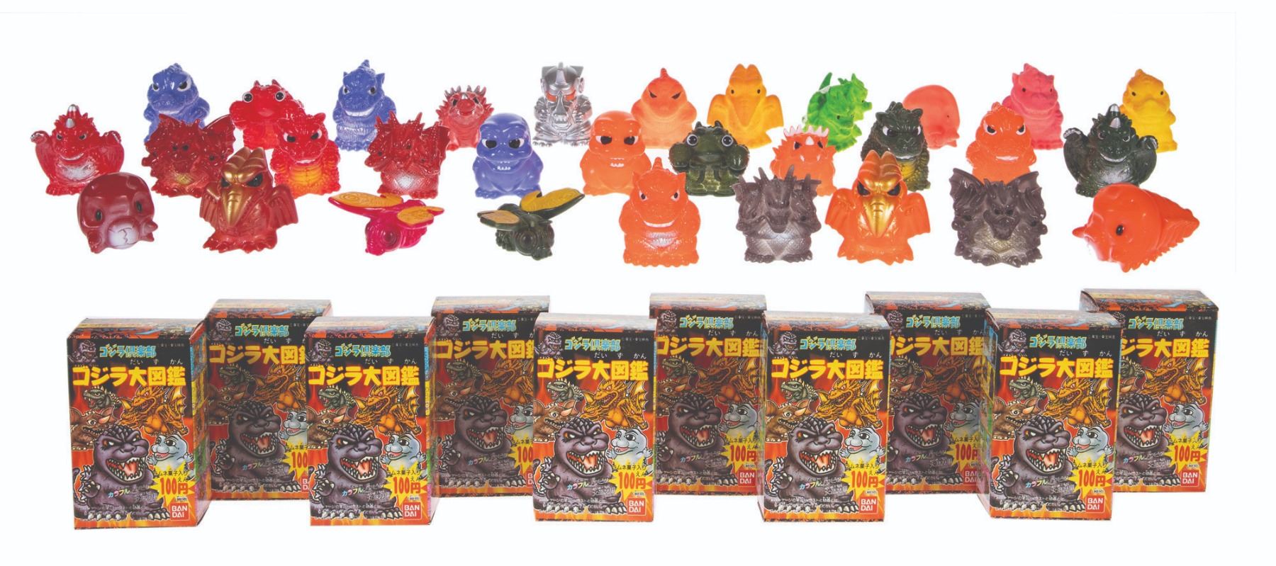 1992. Bandai Godzilla Great Illustrated Collection 2 10 Figure Set w/ Boxes/Lot of 3 Superdeformed Sets: 6 Figures, 12 Figures & 13 Figures. Figures: 1. 5”. VG+