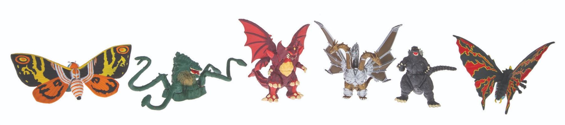 1994/1995. Bandai High Grade Godzilla 1 Gashapon Capsule Set of 6 Figures/Bandai High Grade Godzilla 2 Gashapon Capsule Set of 6 Figures. Figures: 3” tall. VG+.
