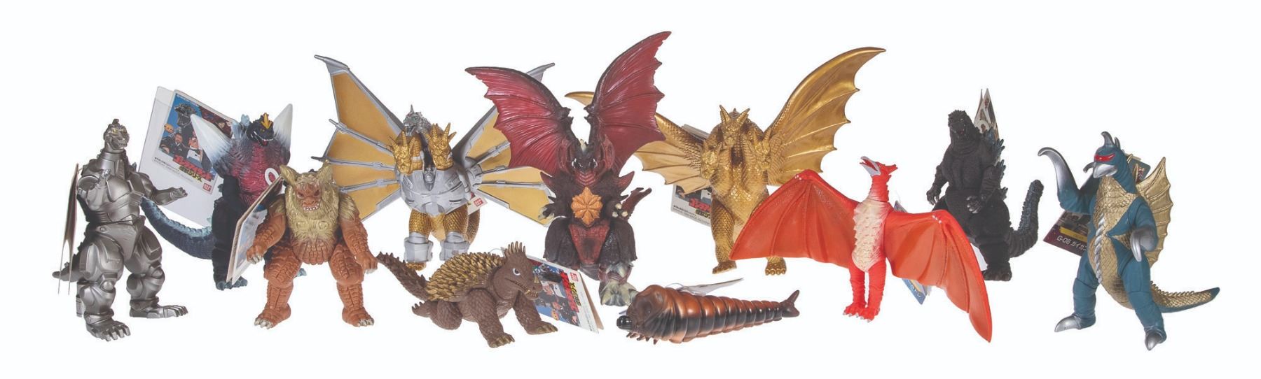 1998. Bandai Godzilla Island Series Vinyl Figure Set. 11 figures. 7” tall figures. VG+